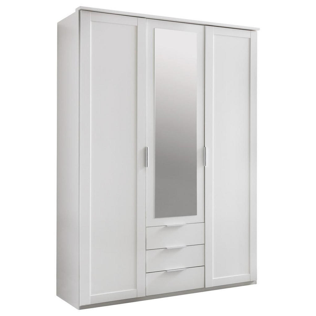 Tato bílá skříň se zrcadlem o rozměrech 135 cm na šířku, 210 cm na výšku a 59 cm na hloubku nabízí dostatek prostoru pro vaše oblečení a doplňky. Skříň je vybavena třemi prostornými dveřmi, které umožňují snadný přístup k obsahu.