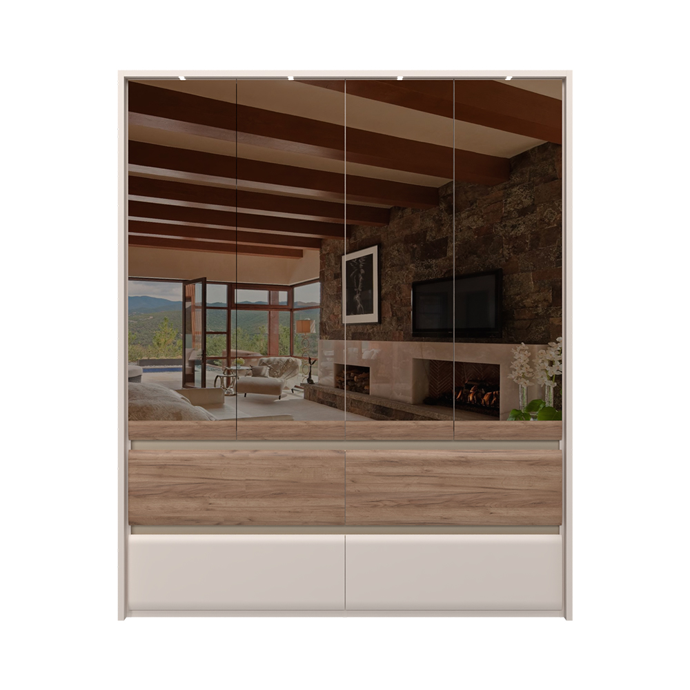 Šatní skříň INVICTUS P44-4OG/IC v kašmírovém matném laku a dekoru ořech pacific je ideální volbou pro ty, kteří hledají kombinaci elegance a funkčnosti. Tato skříň se zrcadlem je součástí prestižní kolekce INVICTUS a přináší do vašeho domova nejen styl, ale i praktické úložné řešení.