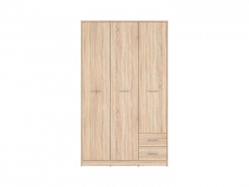 Skříň je rozdělena dělící stěnou na dvě části, přičemž každá část obsahuje police a tyč na zavěšení šatů. V pravé části se nachází také dva šuplíky, které poskytují dodatečný úložný prostor pro drobnosti. Tímto způsobem máte vše po ruce a uspořádané.