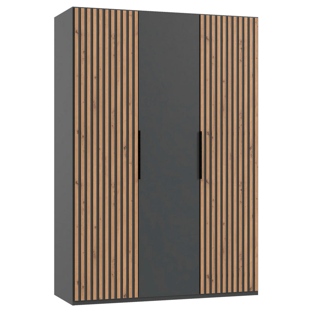 Šatní skříň MID.YOU je ideálním řešením pro každého, kdo hledá stylový a praktický nábytek do svého domova. S rozměry 150 cm na šířku, 216 cm na výšku a 58 cm na hloubku nabízí dostatek prostoru pro uložení oblečení a dalších potřeb. Tento model je dostupný v atraktivních barvách grafitu a dubu, což zajišťuje, že se skříň skvěle hodí do různých interiérů.