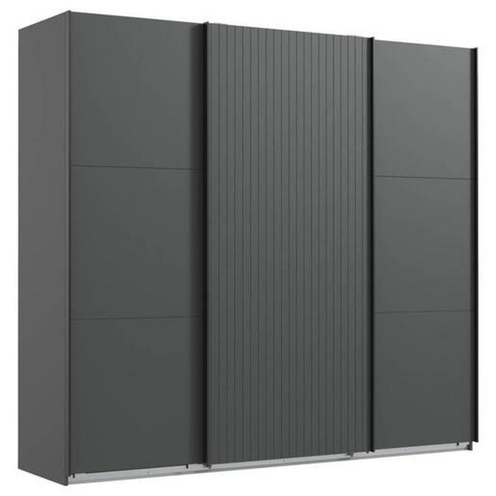 Skříň s posuvnými dveřmi v elegantní grafitové barvě je skvělým řešením pro každý moderní interiér. S rozměry 250 cm na šířku, 216 cm na výšku a hloubkou 65 cm, nabízí dostatek prostoru pro uskladnění oblečení, obuvi a dalších potřebných věcí. Tato skříň je navržena tak, aby splnila požadavky i těch nejnáročnějších zákazníků.