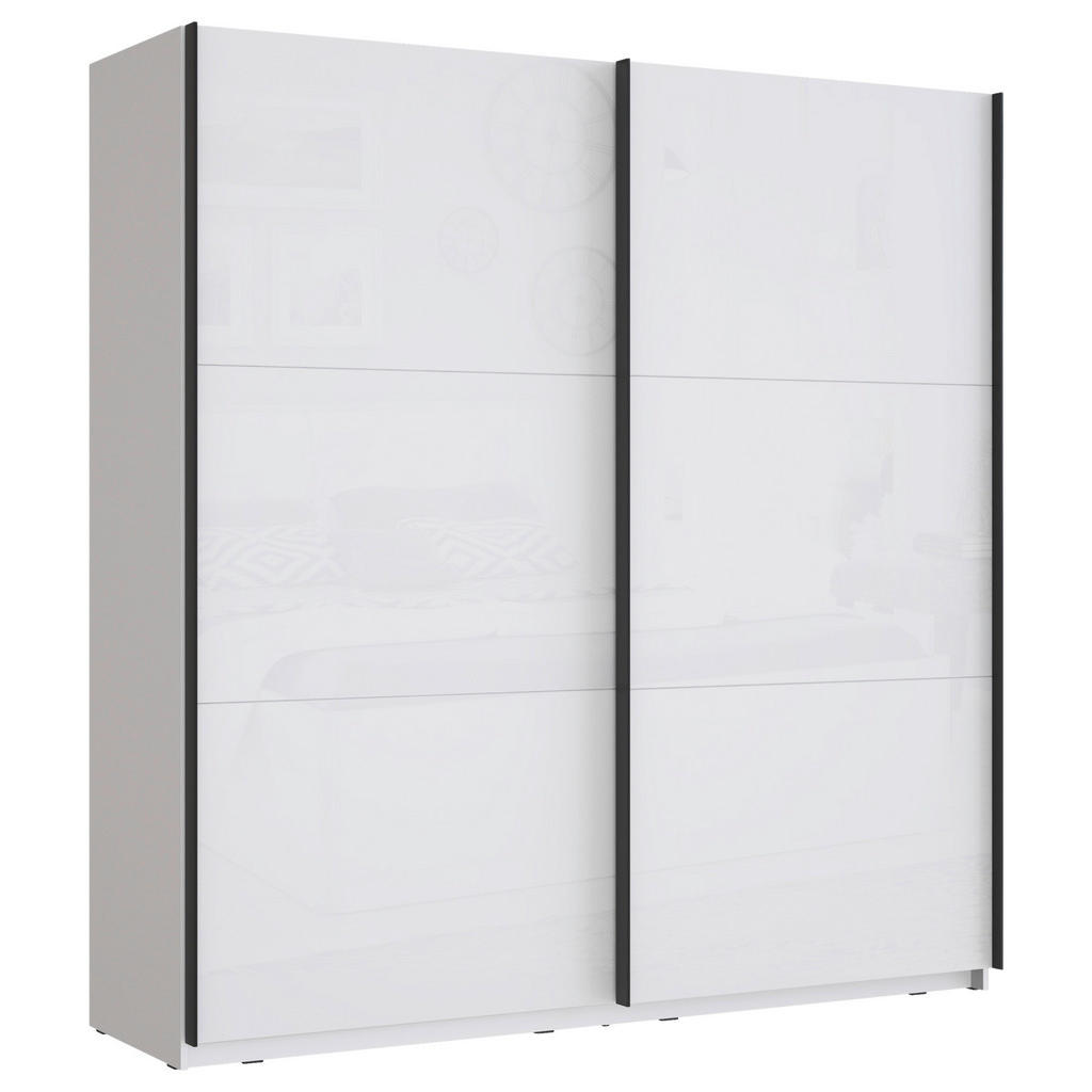 Skříň s posuvnými dveřmi v bílé, vysoce lesklé barvě je nejen praktickým, ale i estetickým prvkem vašeho domova. Investice do kvalitního nábytku se vyplatí, a tato skříň je toho důkazem.
