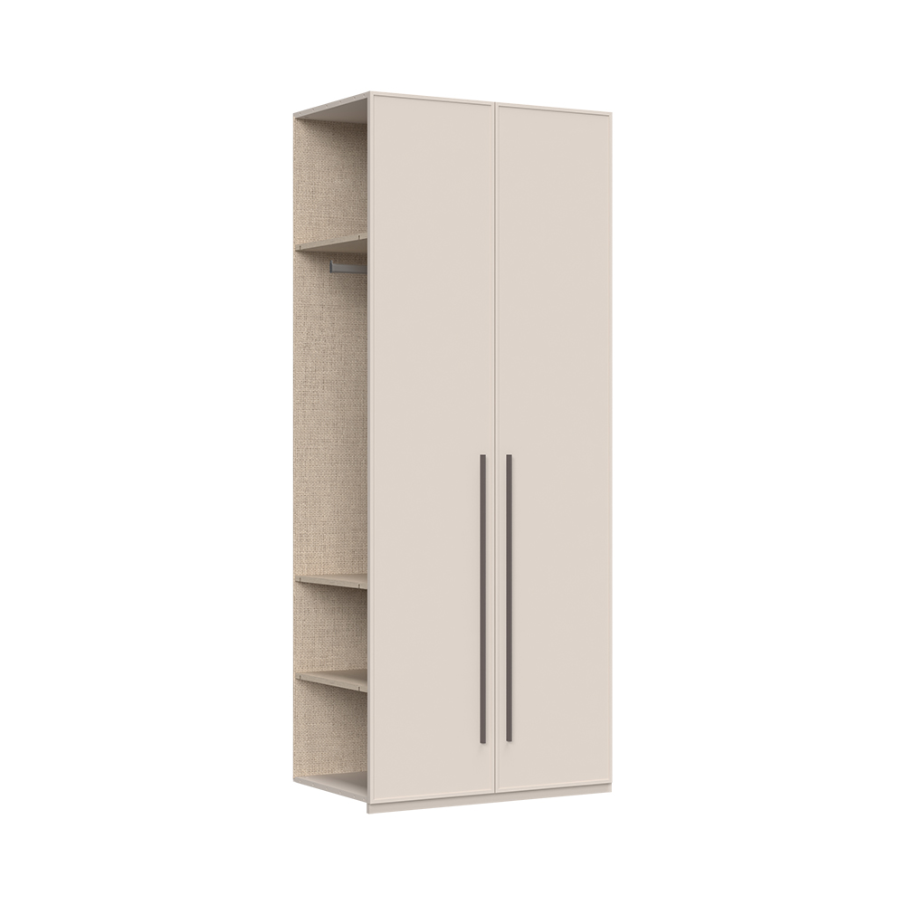 Skříň OPERA je vybavena otevíracími dveřmi s tichým dovíráním, které zajišťují měkké a komfortní zavírání. Tato funkce je ideální pro každodenní používání, kdy oceníte klid a pohodlí. Vysoce kvalitní kování zaručuje dlouhou životnost a spolehlivost skříně.