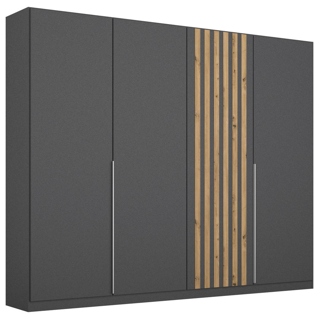 Hledáte praktické a stylové řešení pro uskladnění vašeho oblečení? Šatní skříň s otočnými dveřmi od značky Rauch je ideální volbou pro každou ložnici. Díky svému modernímu designu v šedé barvě s dekorací dub artisan se skříň snadno začlení do různých interiérů.