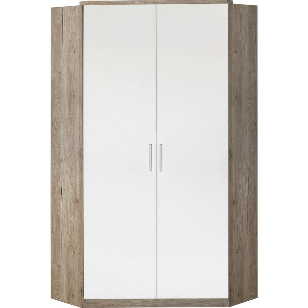 Získejte stylovou a praktickou rohovou šatní skříň, která šetří prostor a nabízí dostatek úložného místa. Moderní design v bílé a dubové barvě skvěle doplní váš interiér.