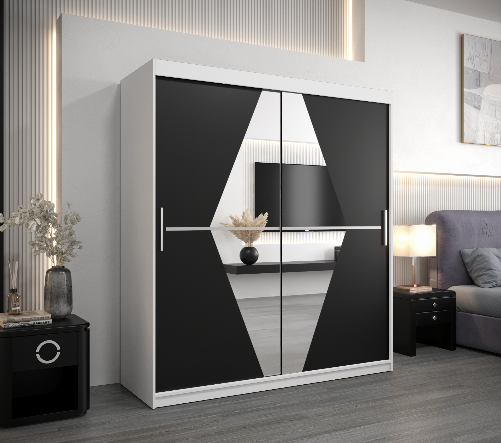 Získejte moderní šatní skříň Abi Bo, která kombinuje styl a praktičnost. S posuvnými dveřmi a zrcadlem je ideální pro každou ložnici.