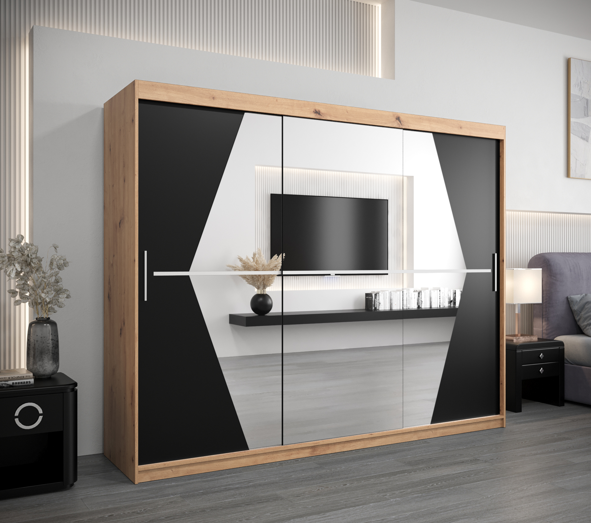 Šatní skříň Abi Bo – Dub artisan, 250 cm, Černá