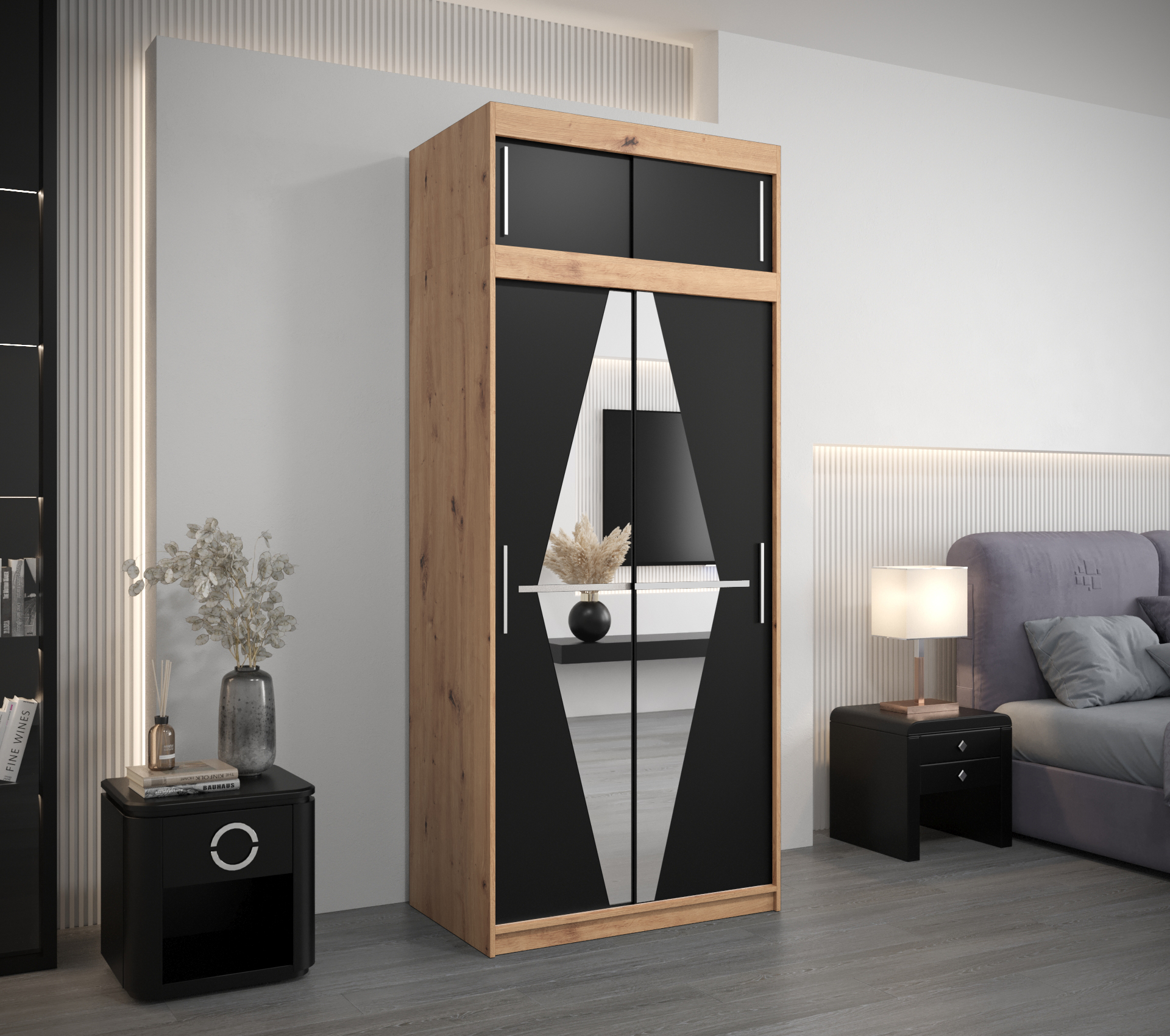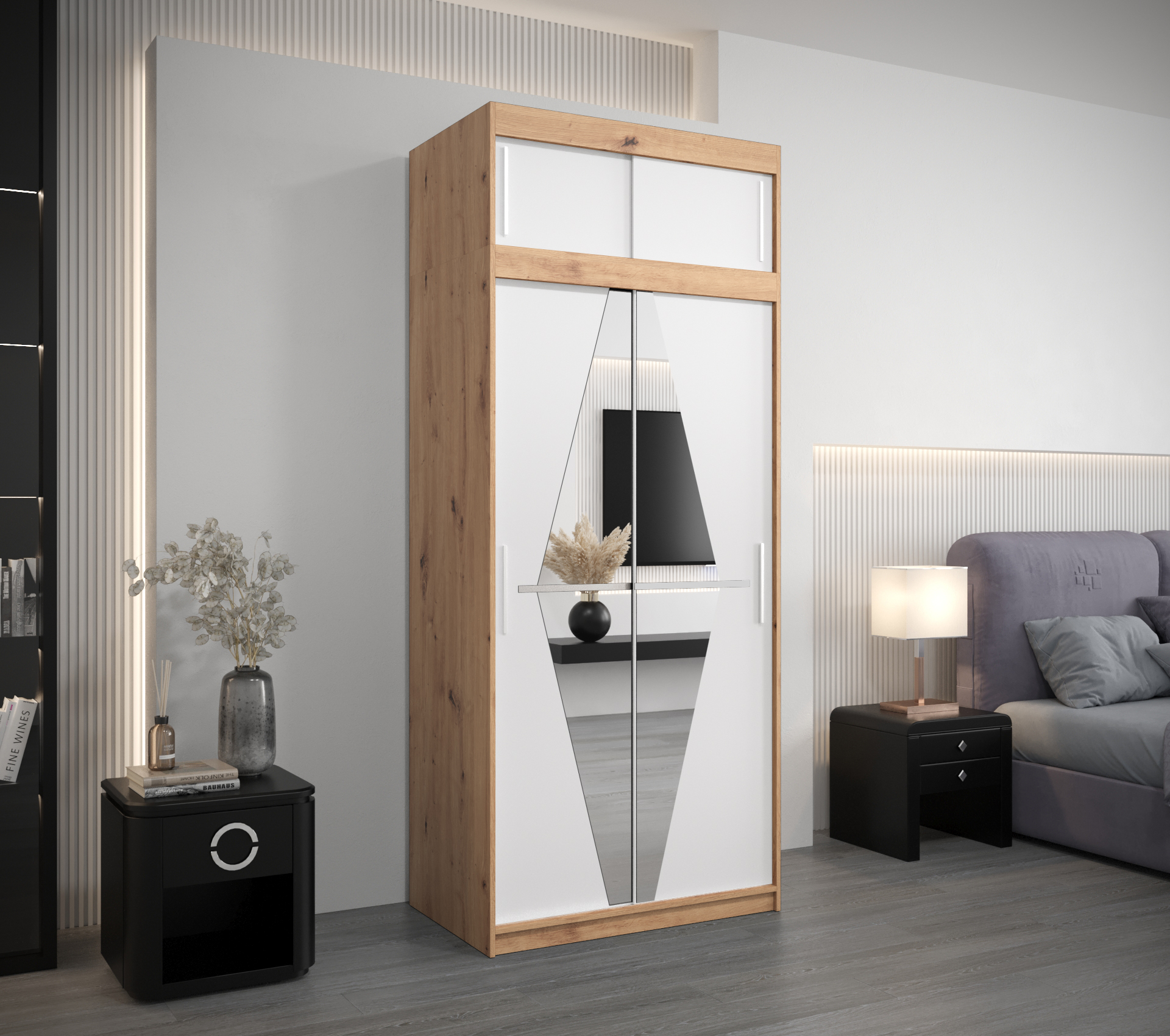 Šatní skříň Abi Bo s nástavcem je ideálním řešením pro každou moderní ložnici. Její elegantní design a kvalitní materiály zaručují, že se stane stylovým doplňkem vašeho interiéru.