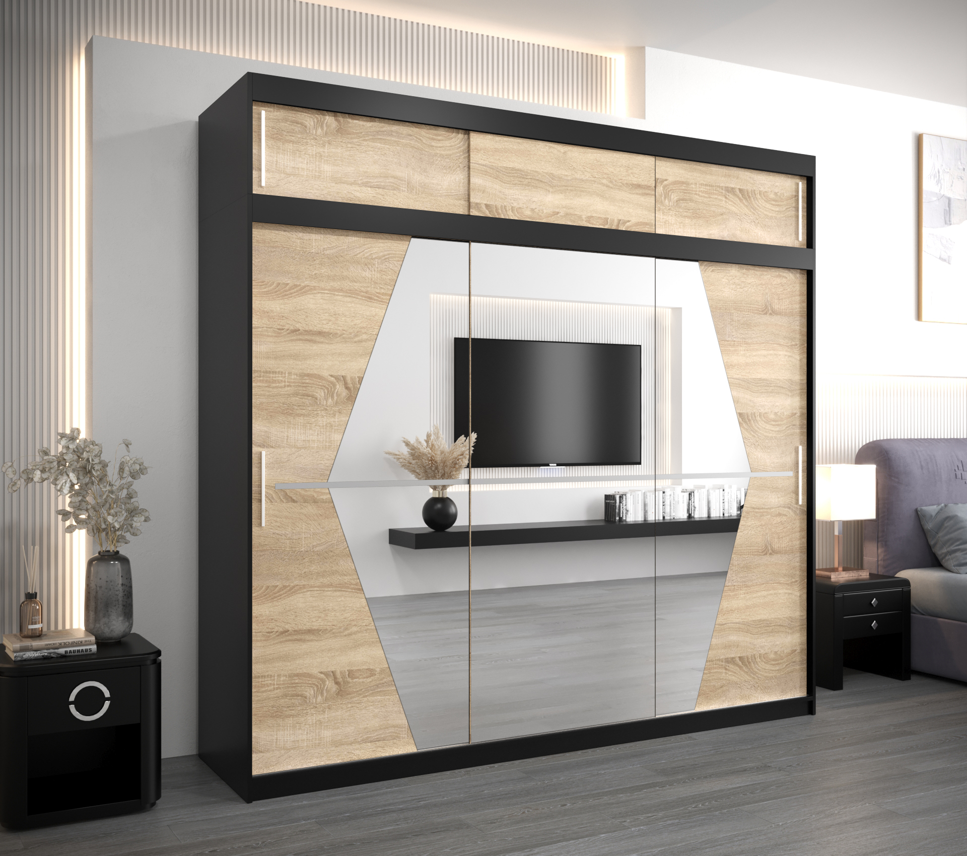 • Stylové zrcadlo: Skříň je vybavena zrcadlem, které opticky zvětšuje prostor a přidává na eleganci.