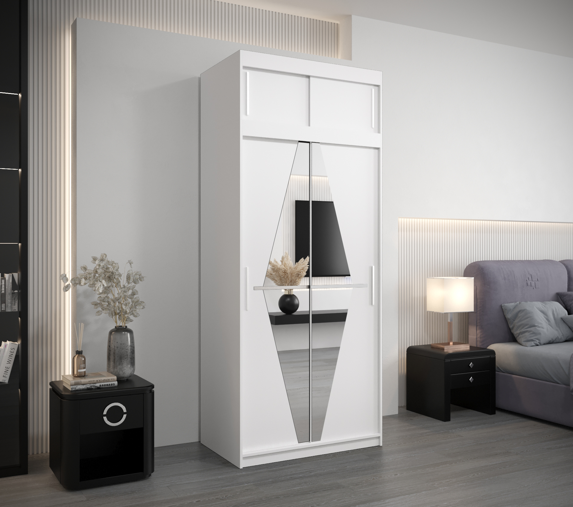 - Zrcadlo: Šatní skříň je vybavena zrcadlem, které opticky zvětšuje prostor a je praktickým doplňkem pro každodenní použití.
