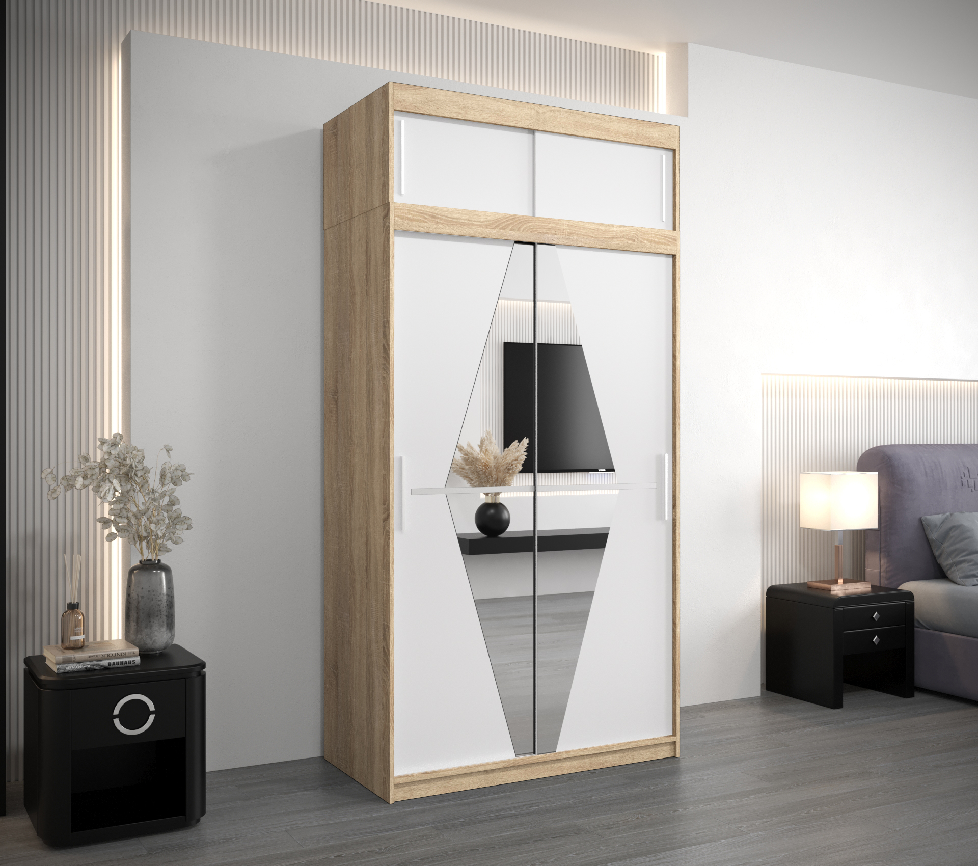 Šatní skříň Abi Bo s nástavcem nabízí stylový design a prostorné uspořádání pro vaše oblečení. Ideální volba pro moderní ložnice.