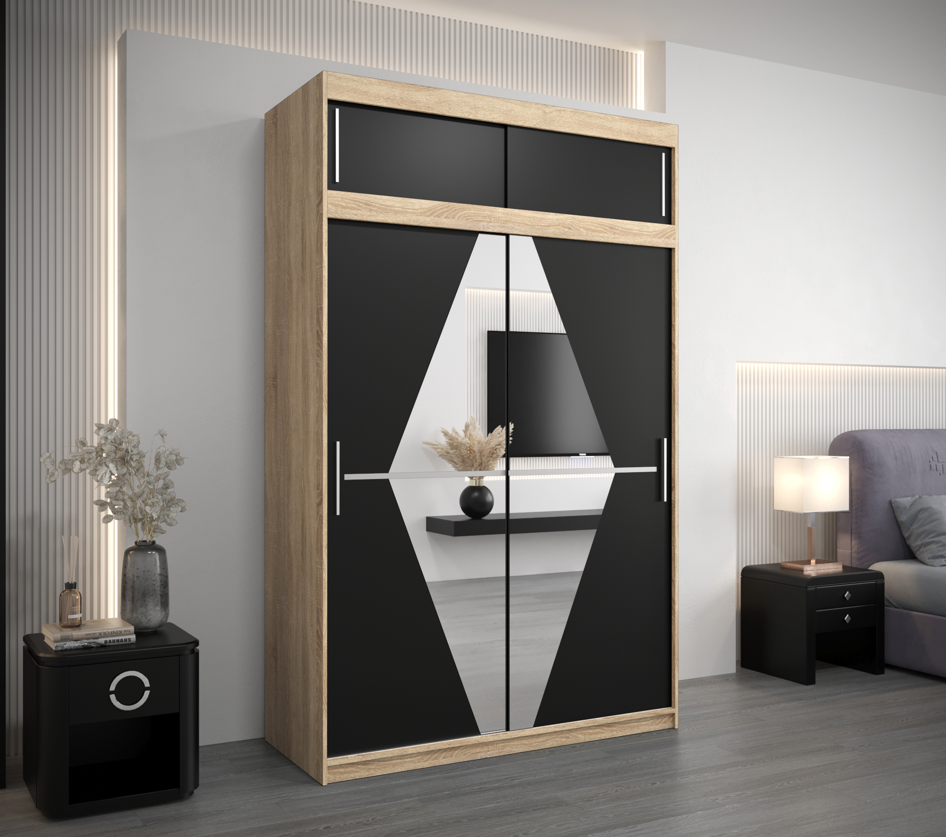 Hledáte moderní a elegantní řešení pro vaši ložnici? Šatní skříň Abi Bo s nástavcem v dekoru dub sonoma a černými posuvnými dveřmi přináší nejen styl, ale i praktičnost. Tato šatní skříň nabízí dostatek úložného prostoru pro vaše oblečení a doplňky, což oceníte zejména v menších bytech.