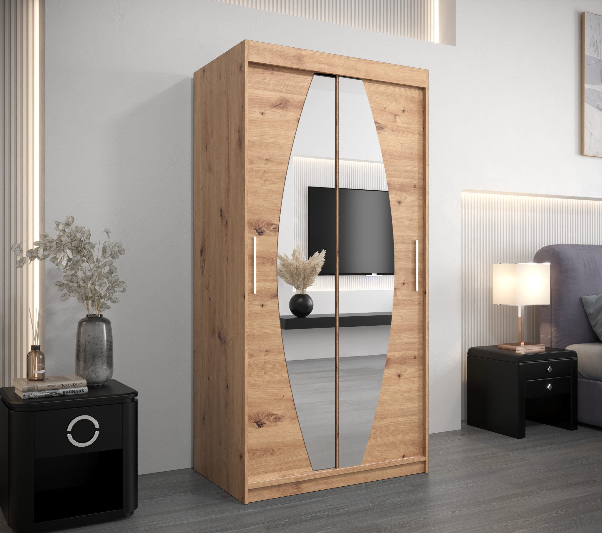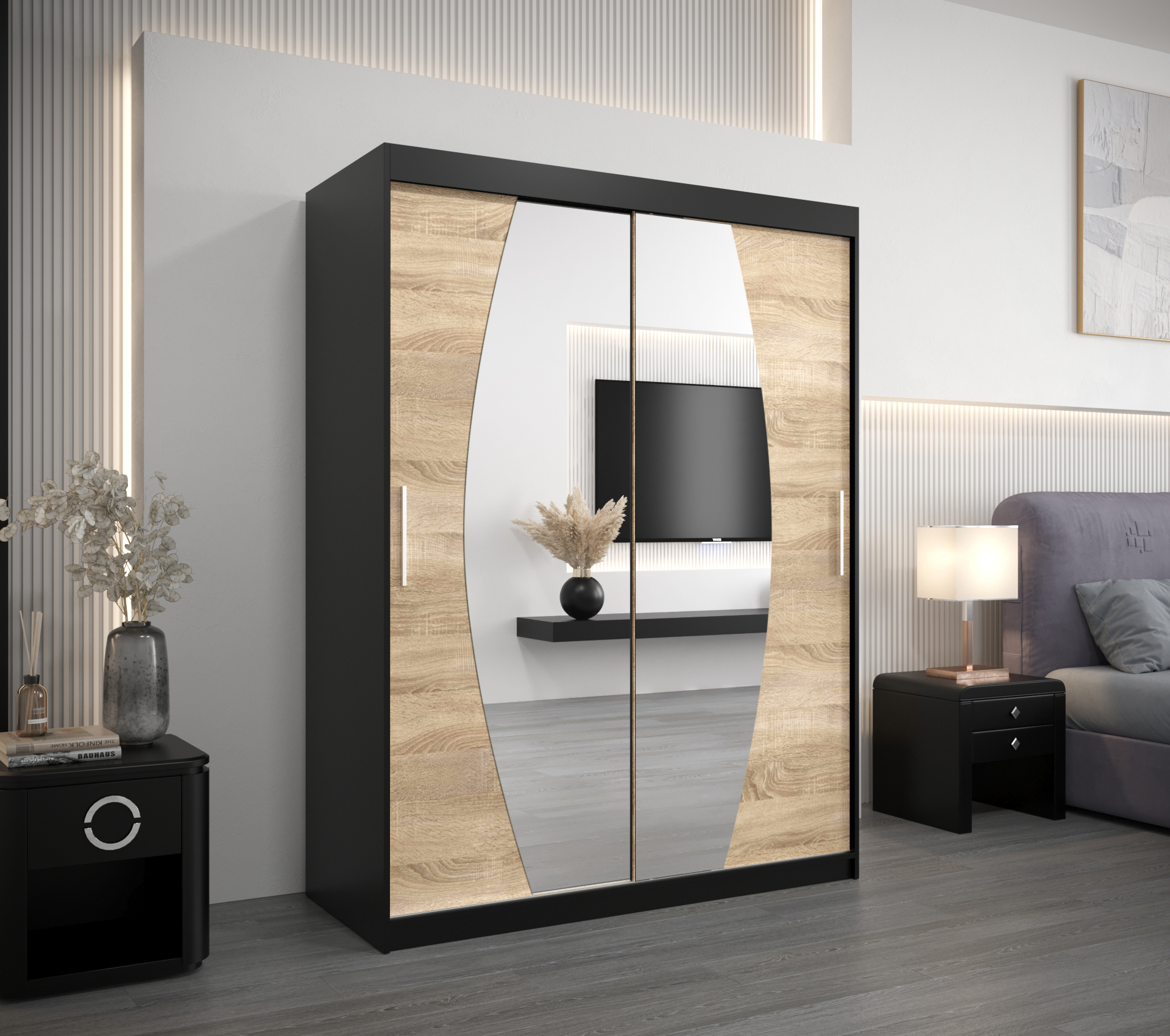 Šatní skříň Abi E0 je dostupná v několika barevných variantách, včetně dub artisan, dub sonoma, černé a bílé. Tyto odstíny lze vzájemně kombinovat, což vám dává možnost přizpůsobit skříň vašemu interiéru.