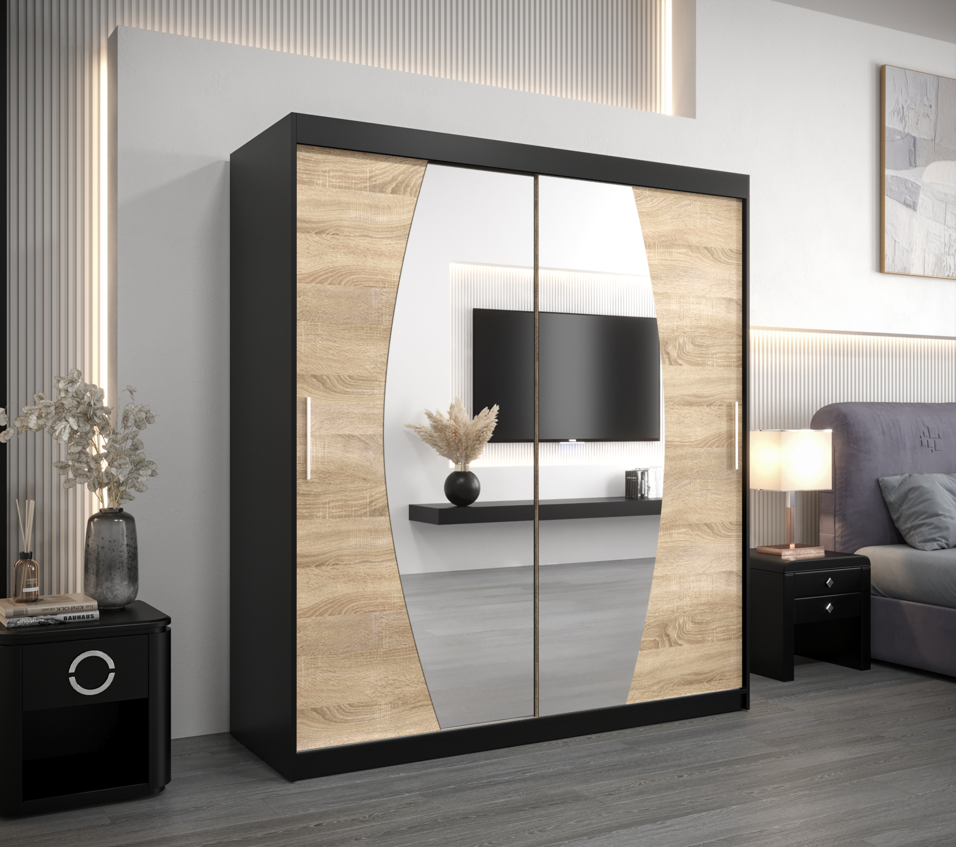 Šatní skříň Abi E0 je ideální volbou pro ty, kteří hledají moderní a stylové řešení pro své oblečení. Tato skříň, s korpusem v elegantní černé barvě, se skvěle hodí do každého interiéru a poskytuje dostatek úložného prostoru pro vaše věci.