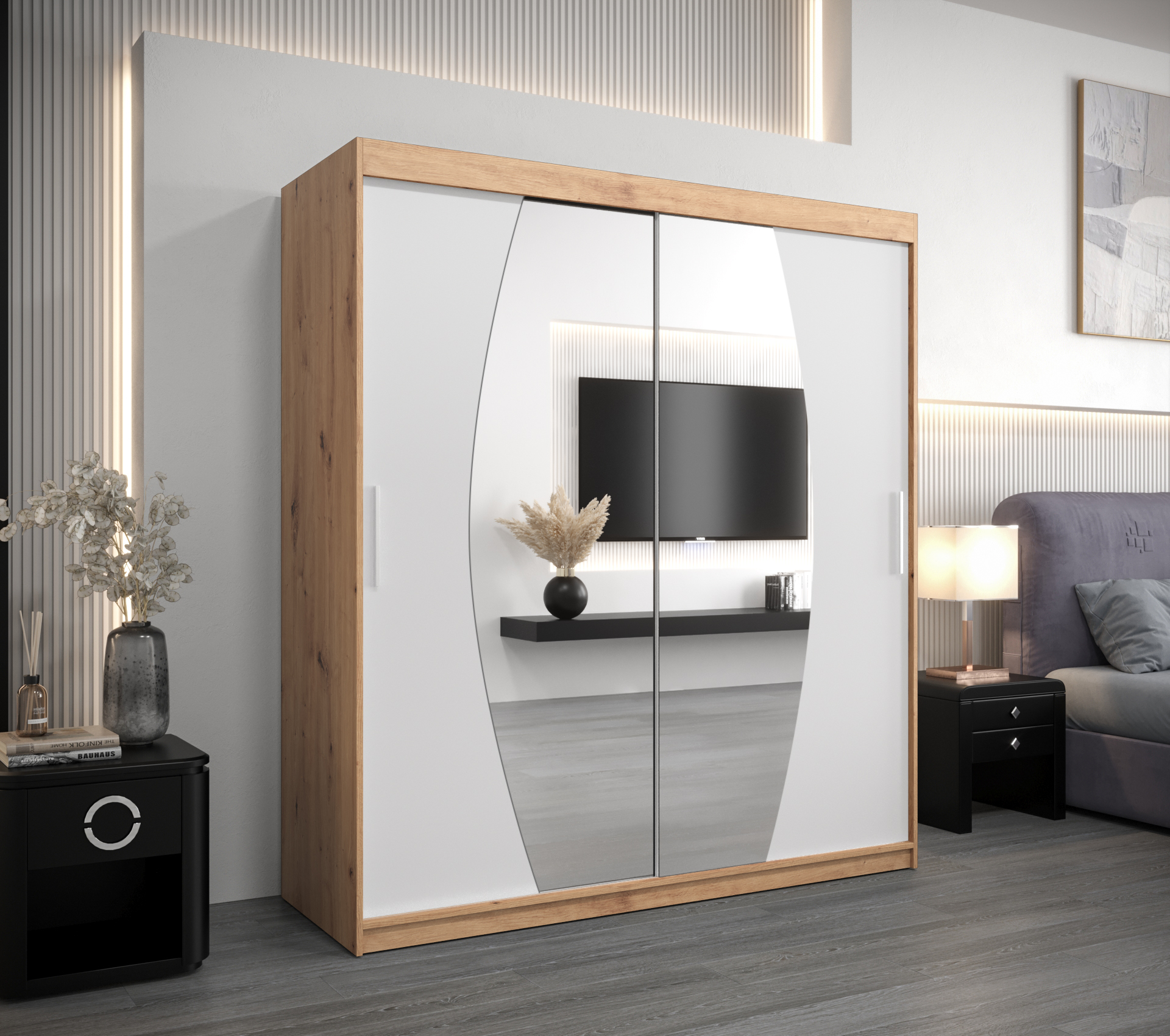 - Zrcadlo: Skříň je vybavena zrcadlem, které opticky zvětšuje prostor a přidává na funkčnosti.