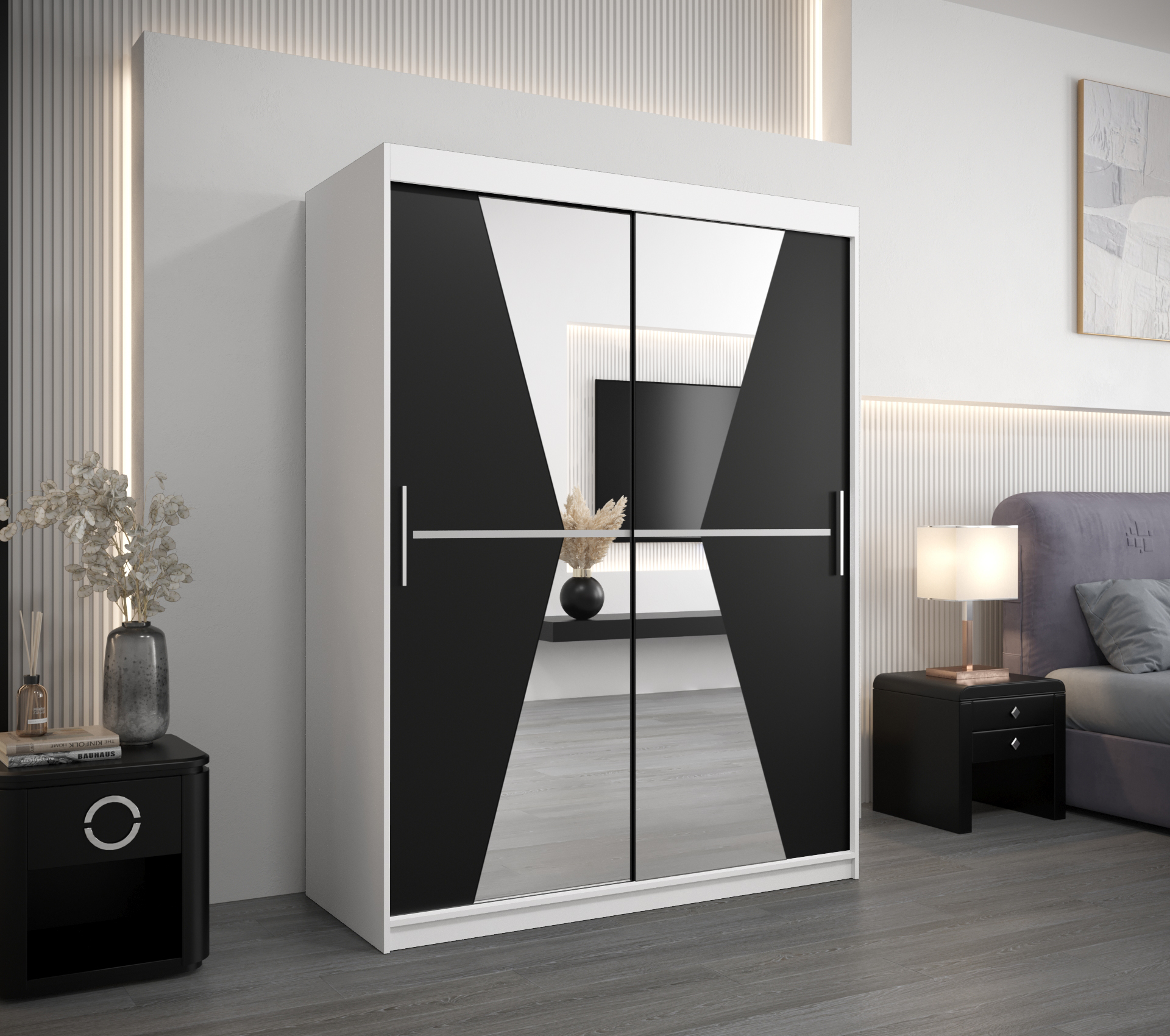 Šatní skříň Abi Ma je ideální volbou pro každého, kdo hledá stylový a funkční nábytek do svého domova. S rozměry 150 cm a elegantním bílým korpusem v kombinaci s černými posuvnými dveřmi, tato skříň přináší do vašeho interiéru moderní vzhled a maximální praktičnost.