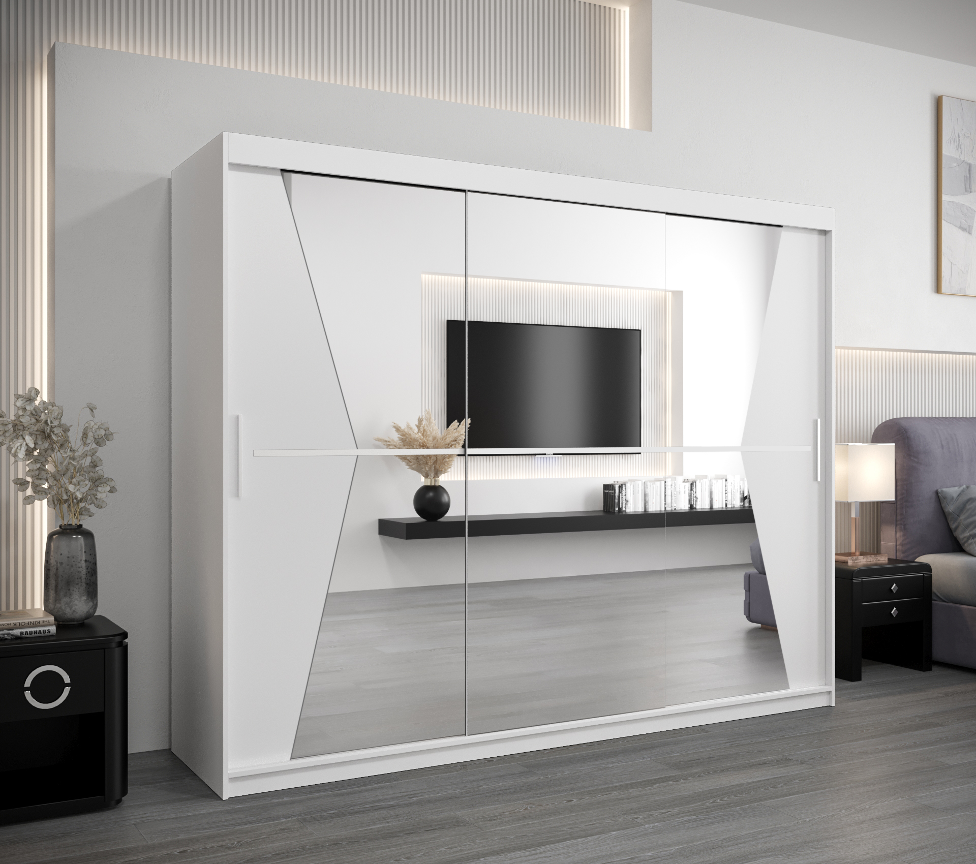 - Zrcadlo: Skříň je vybavena zrcadlem, což opticky zvětšuje prostor a přidává na eleganci.