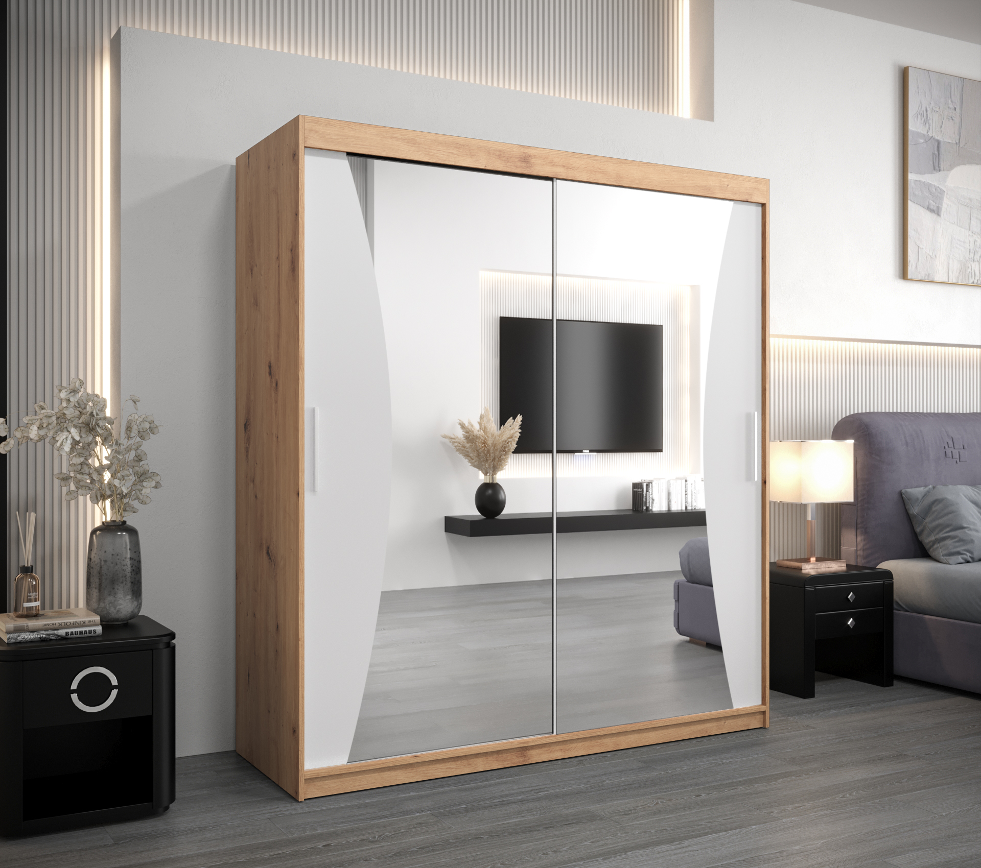 Šatní skříň Abi Mo představuje ideální volbu pro ty, kteří hledají moderní a praktické řešení pro úložný prostor. Díky svému originálnímu vzhledu a kvalitnímu zpracování se stane stylovým prvkem vašeho interiéru. S posuvnými dveřmi a elegantním dekorem dub artisan je tato skříň nejen funkční, ale i estetická.