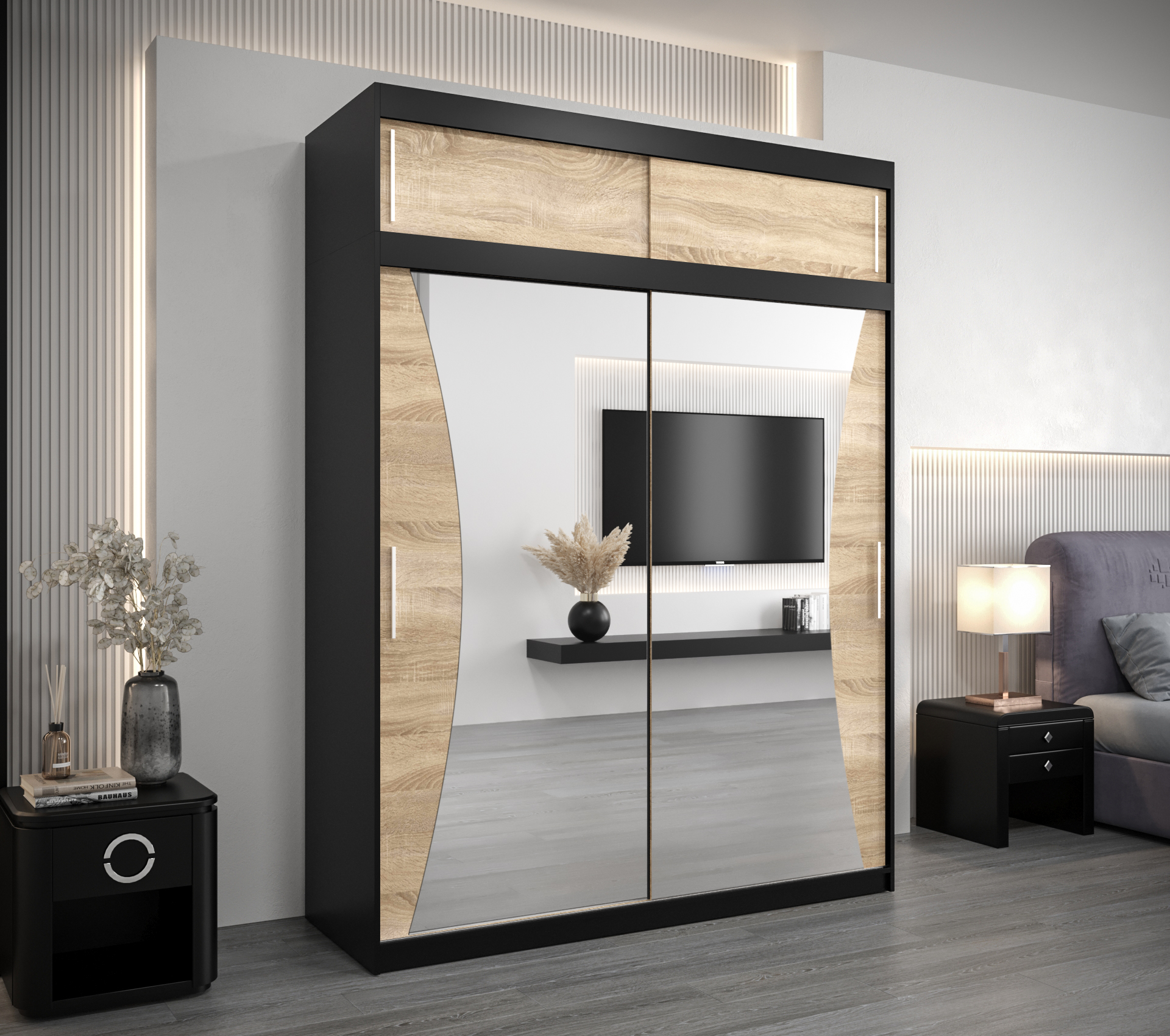 - Zrcadlo: Skříň je vybavena zrcadlem, které opticky zvětšuje prostor a přidává na funkčnosti.