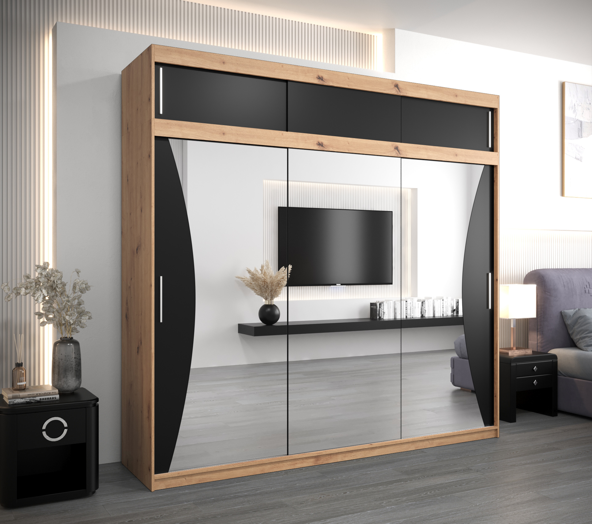 - Zrcadlo: Šatní skříň je vybavena zrcadlem, které opticky zvětšuje prostor a usnadňuje oblékání.