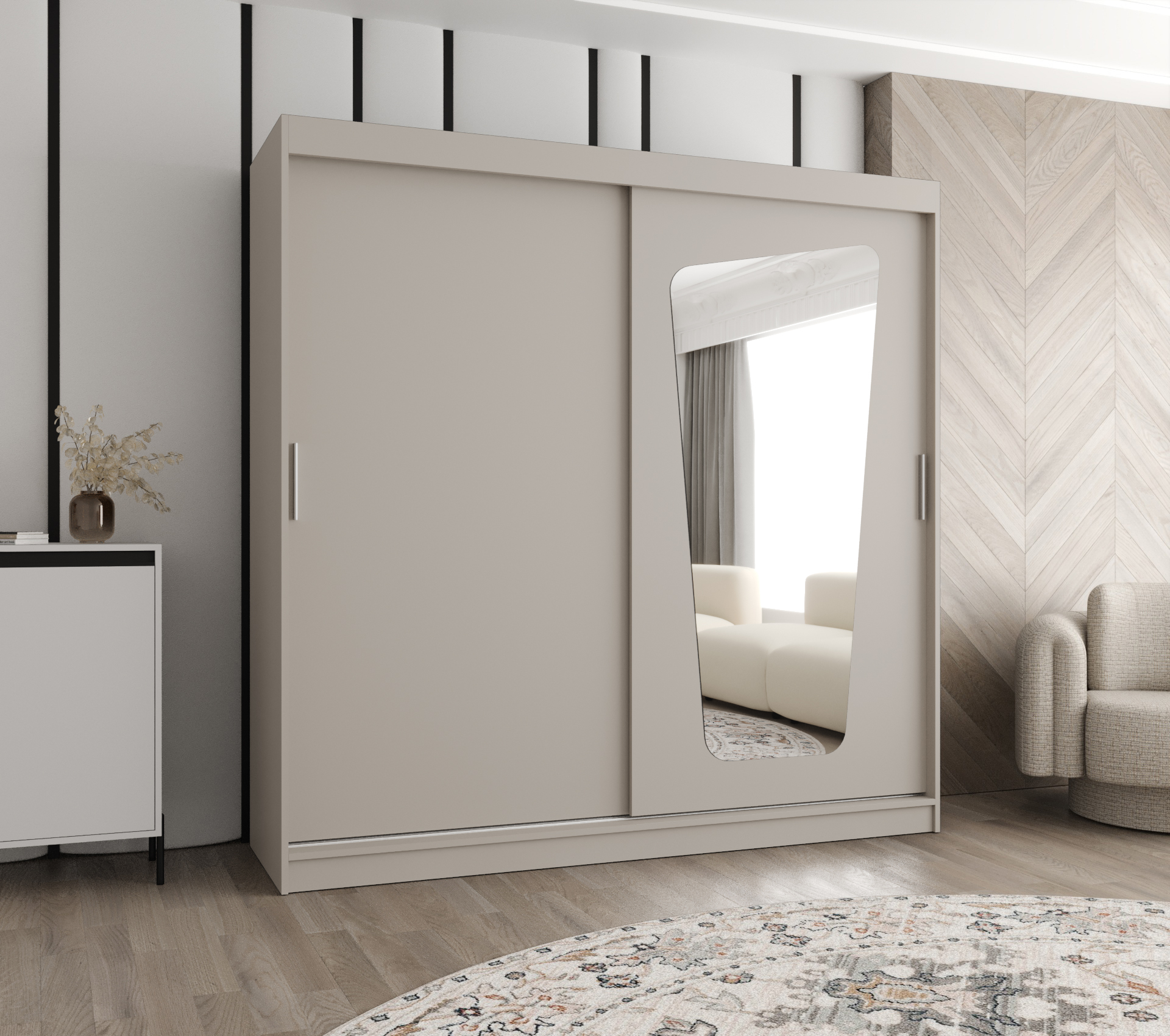 Vyberte si moderní šatní skříň Abi Moka pro elegantní úložný prostor. S posuvnými dveřmi a zrcadlem je ideální volbou pro každou ložnici.