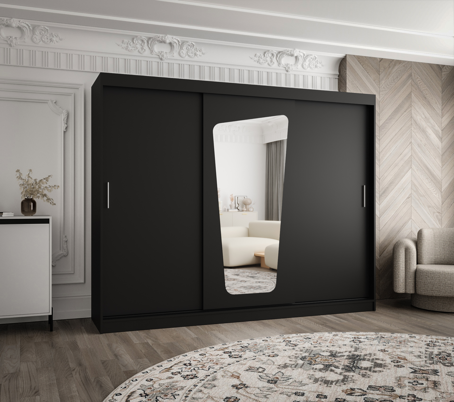 Šatní skříň Abi Moka je dostupná v různých dekorech, včetně dub artisan, kašmíru, černé a bílé. K dispozici jsou varianty od šířky 100 cm až po 250 cm, což umožňuje přizpůsobení skříně vašim potřebám.