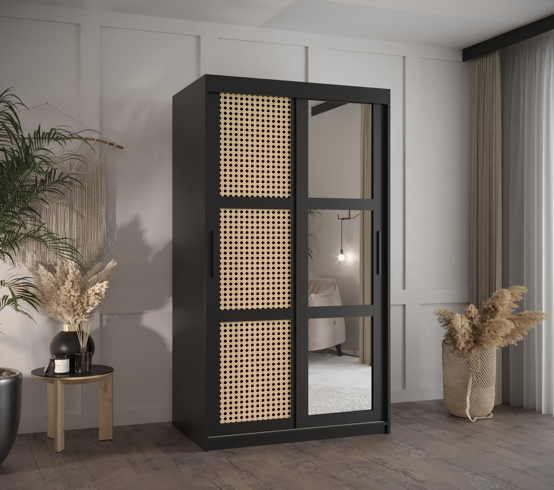 Šatní skříň Abi Plecionka Wiedenska je dostupná v různých velikostech a barevných variantách, včetně černé a bílé. Vyberte si z šířek 100 cm, 120 cm, 150 cm, 180 cm, 200 cm nebo 250 cm, aby perfektně zapadla do vašeho prostoru.