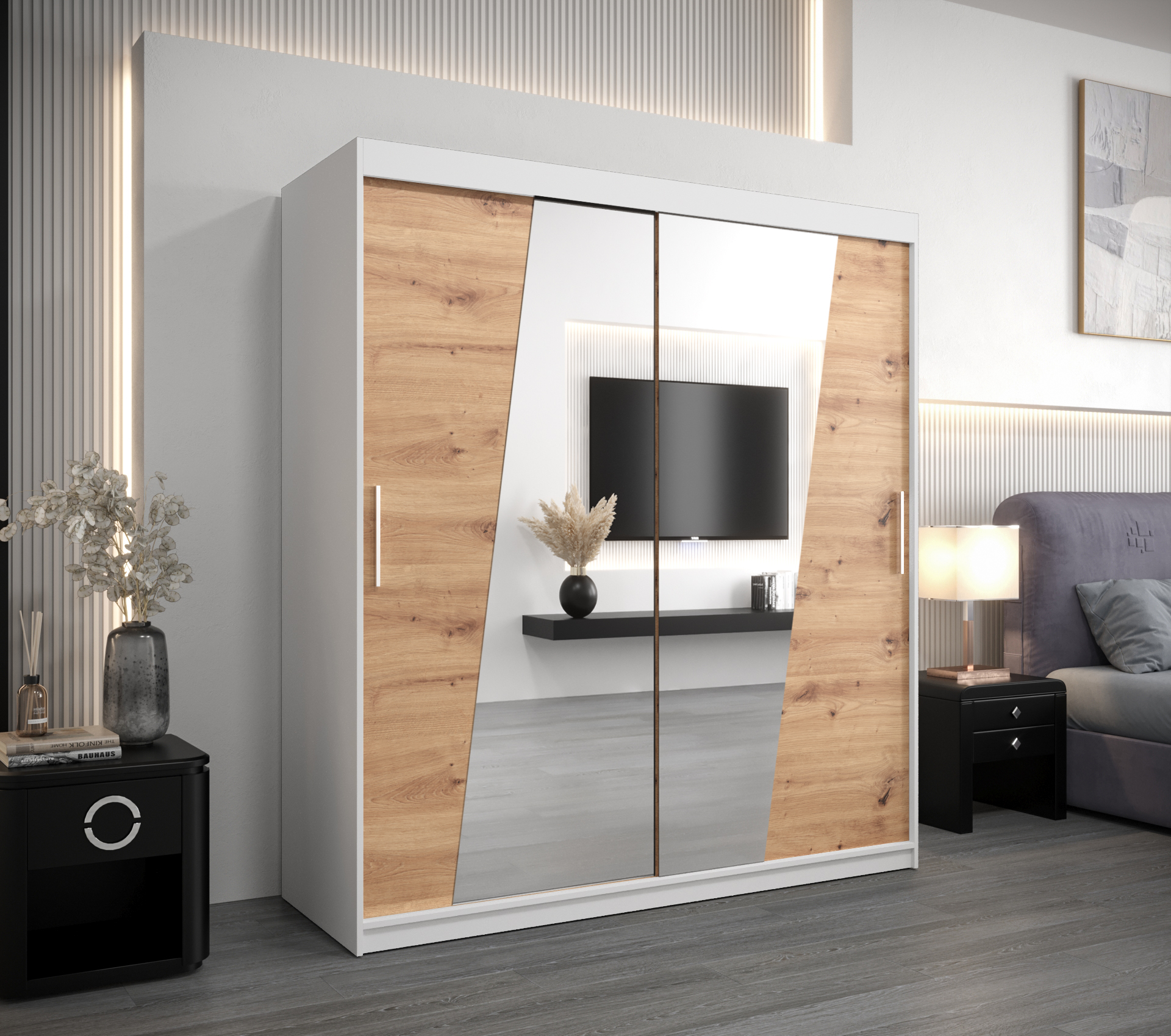Šatní skříň Abi R0 je ideálním řešením pro každého, kdo hledá moderní a funkční nábytek do ložnice. Její elegantní design s bílým korpusem a dveřmi v dekoru dub artisan přináší do vašeho interiéru svěží a příjemnou atmosféru.
