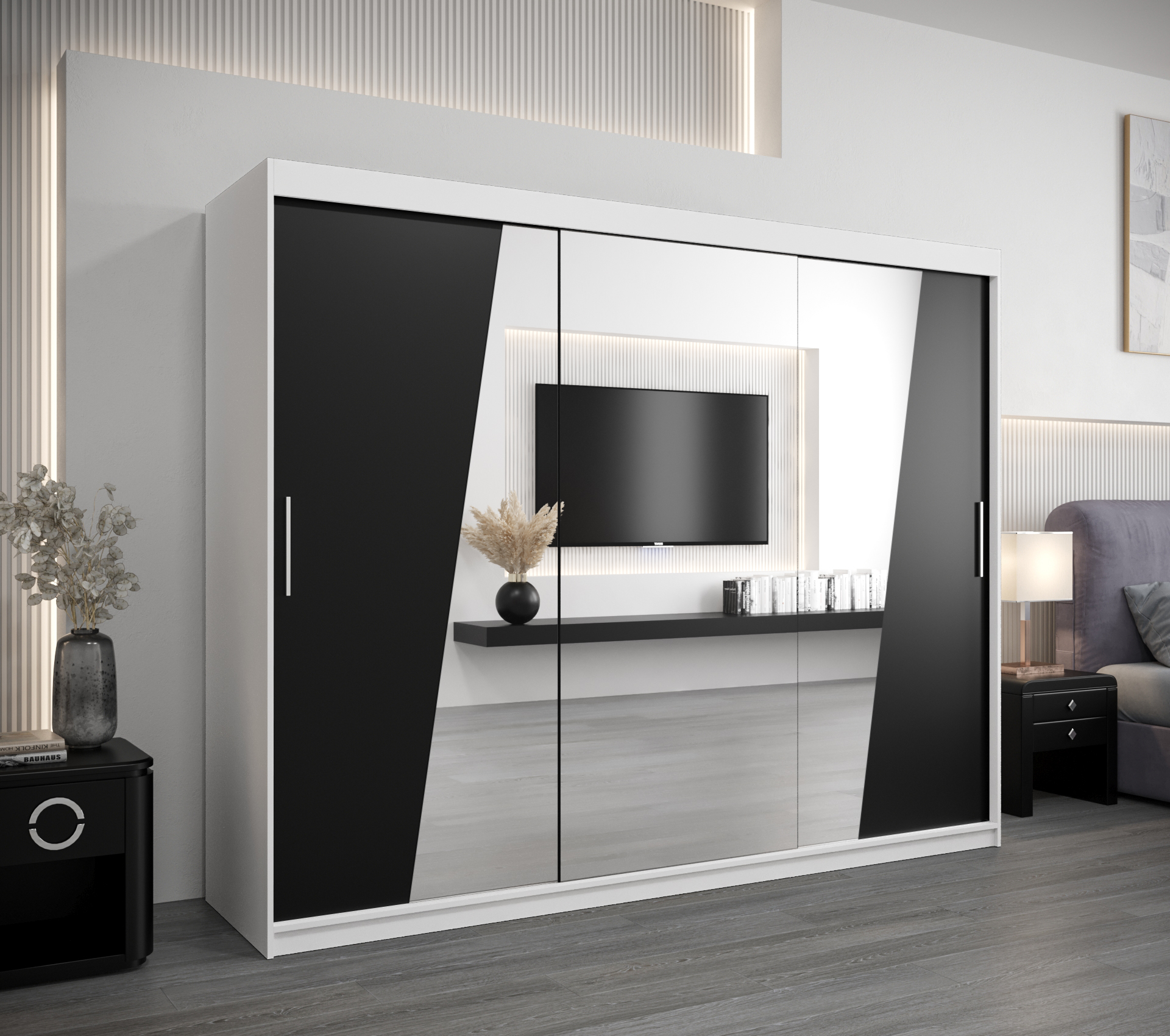 Domů / Šatní skříně / Šatní skříň Abi R0 – Bílá 250 cm s černými dveřmi