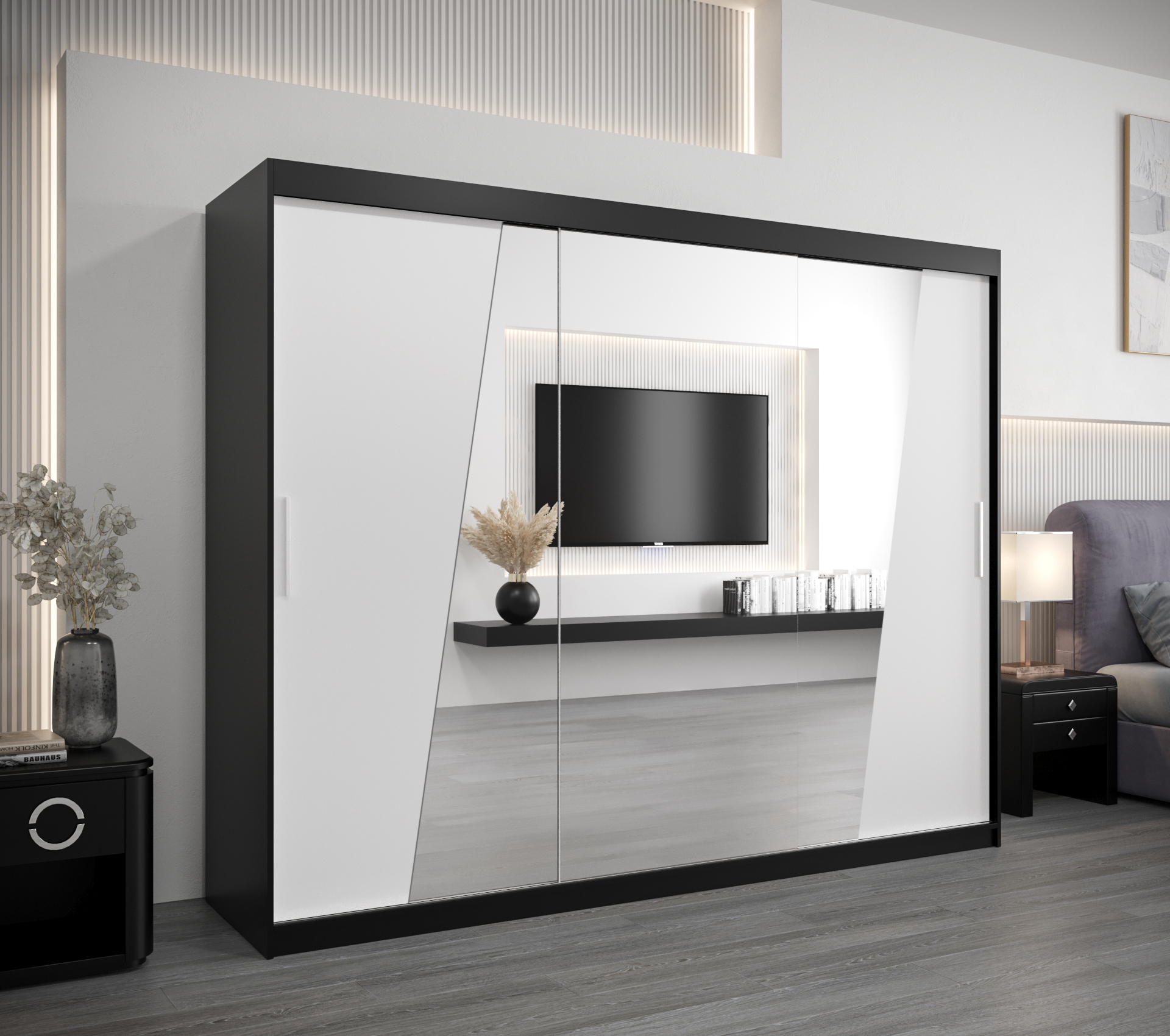 Šatní skříň Abi R0 – Černá, 250 cm, Bílá Dveře