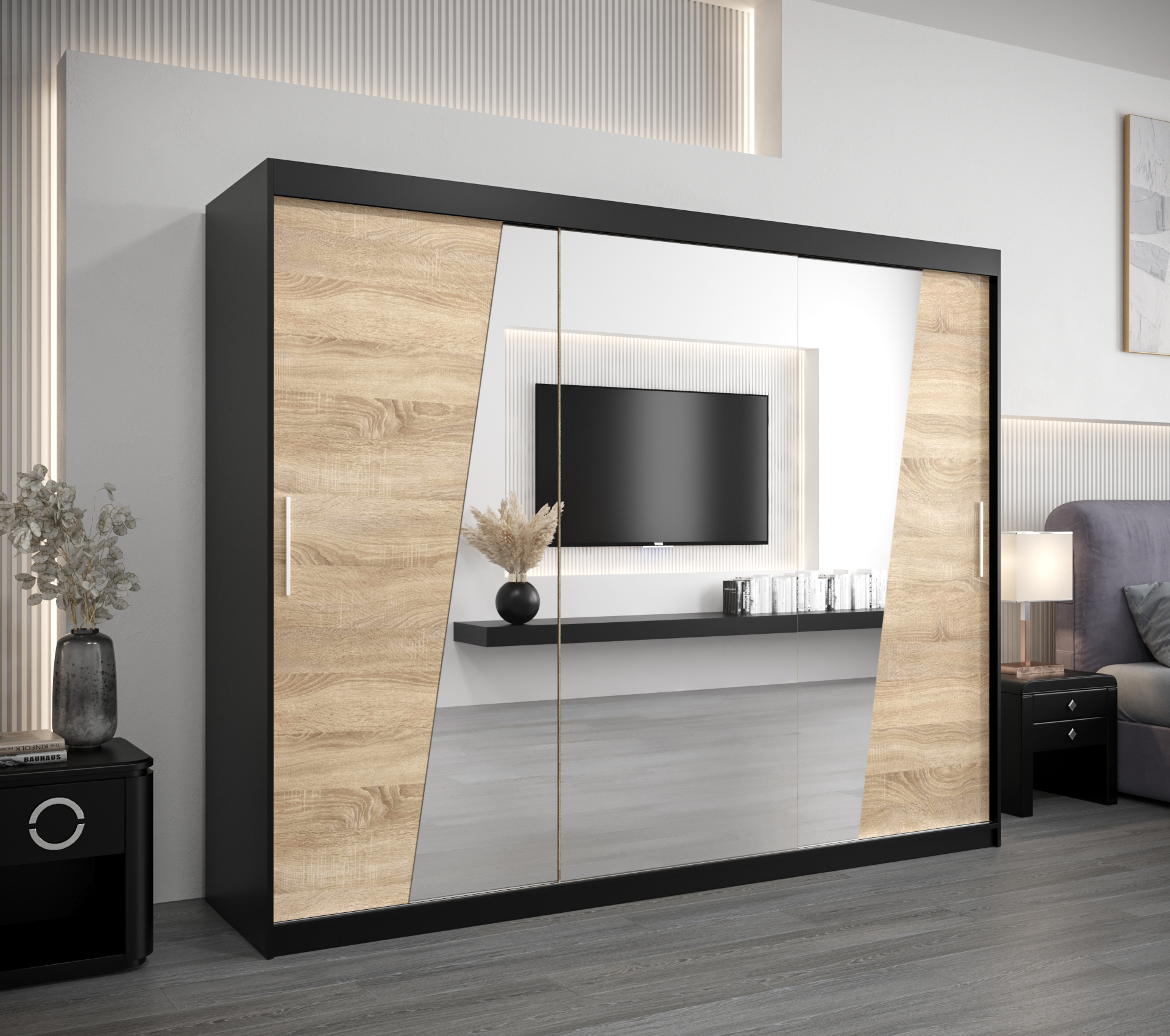 Šatní skříň Abi R0 – Černá, 250 cm, Dub Sonoma