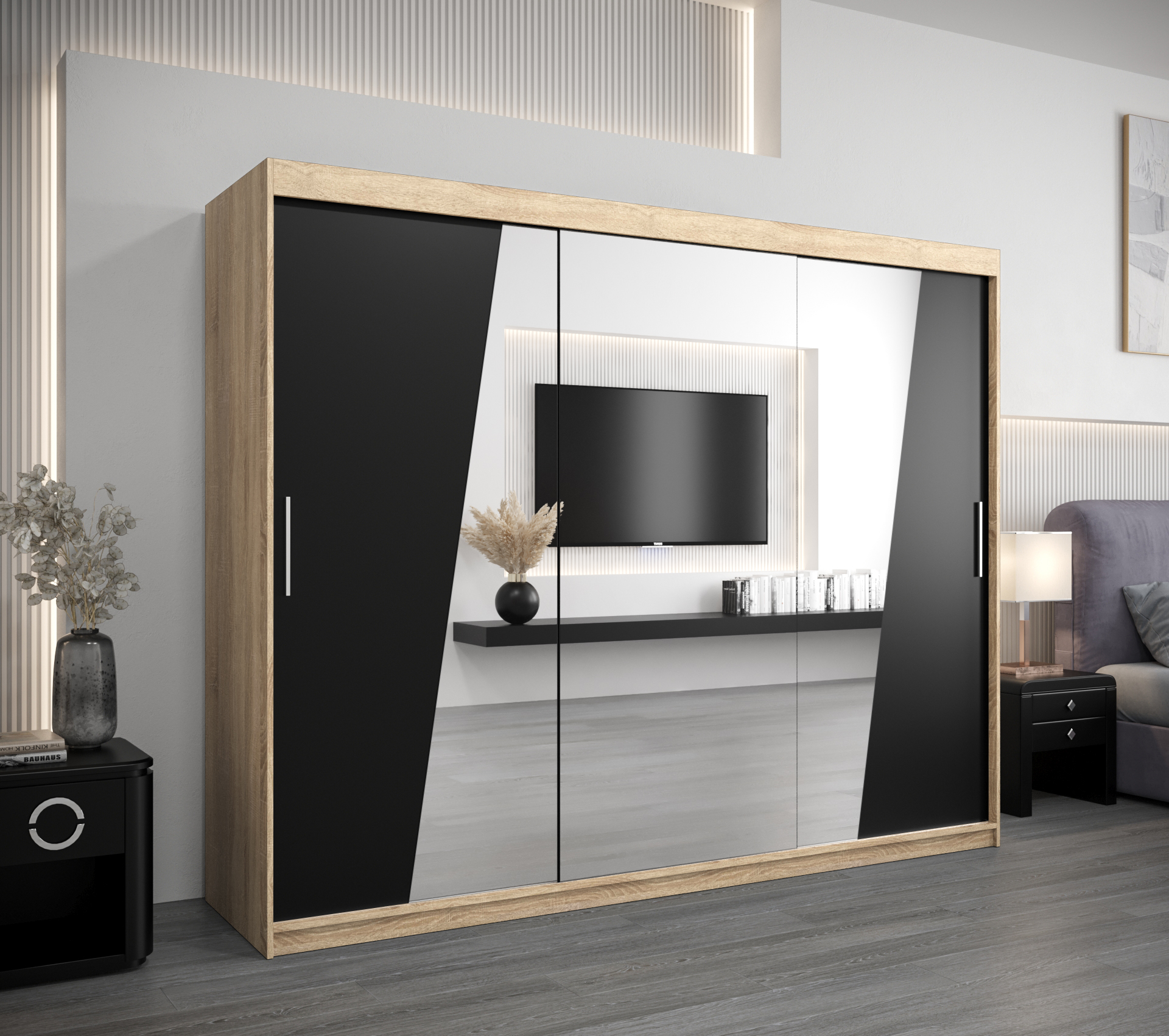 Šatní skříň Abi R0 – Dub Sonoma, 250 cm, Černá
