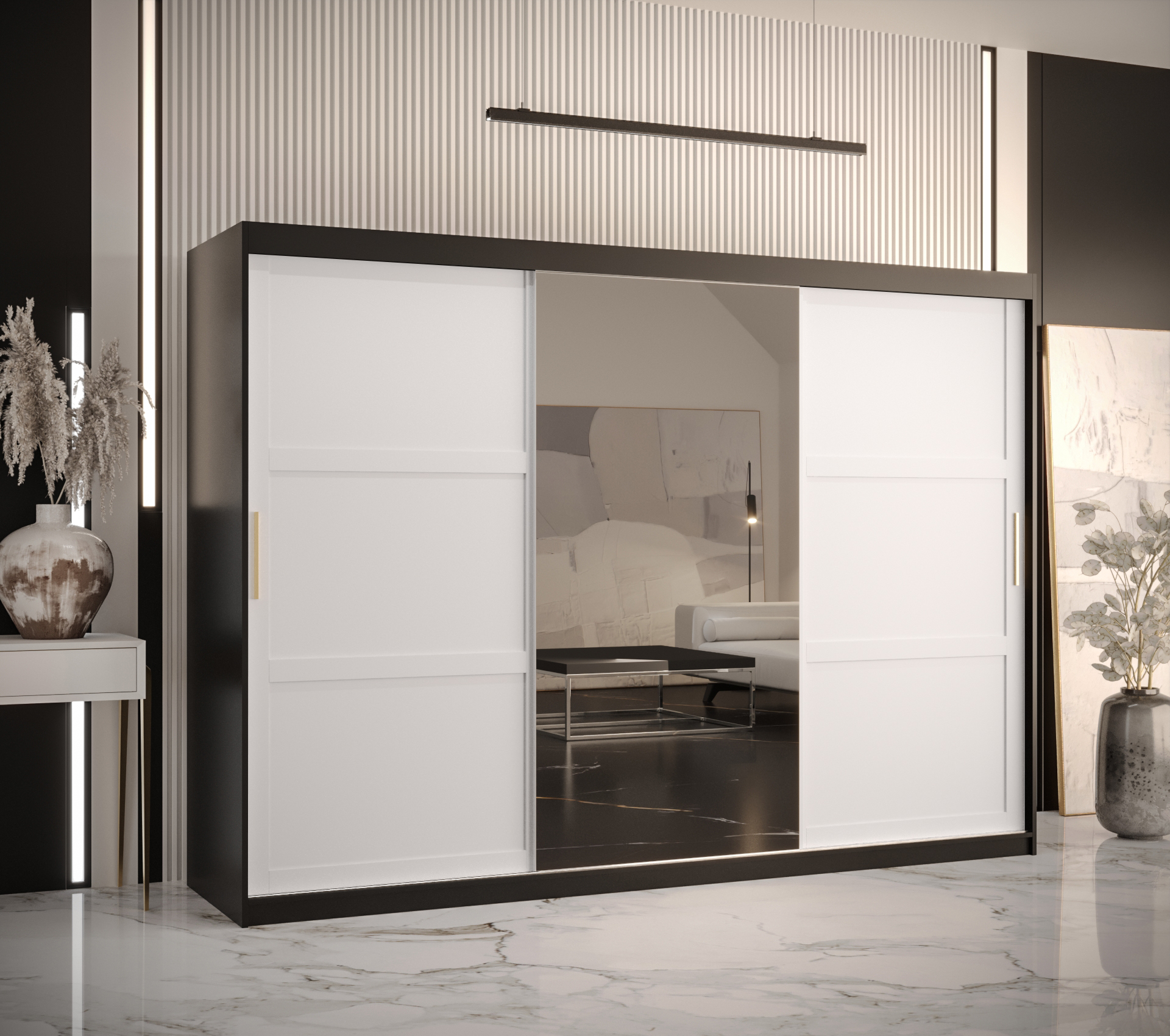 Šatní skříň Abi Ramiro 2 je k dostání v černé a bílé barvě, což vám umožňuje přizpůsobit ji vašim představám a interiéru. Designové dveře s černými nebo bílými lištami zajišťují, že skříň zapadne do jakéhokoli stylu.