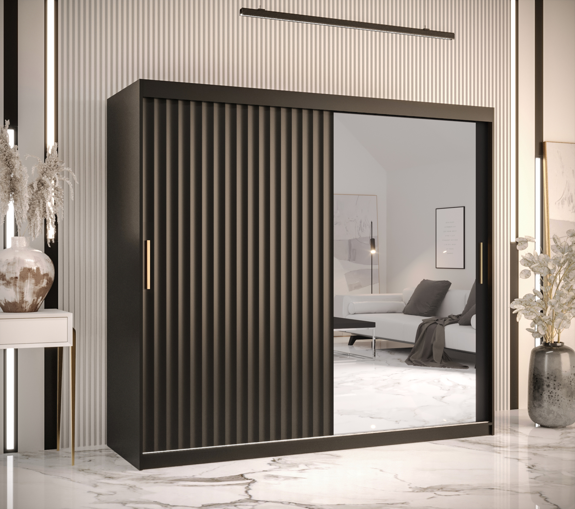 Šatní skříň Abi Riflo Wave 2 – Černá se zrcadlem