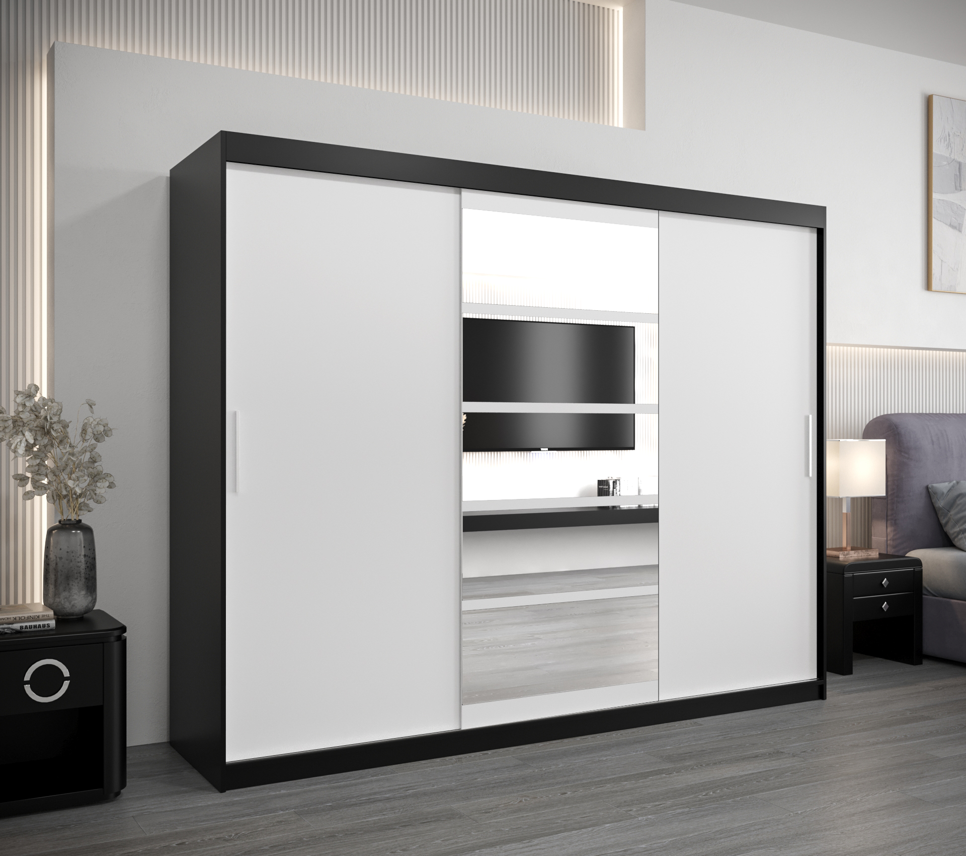 Šatní skříň Abi Ro1 je skvělou volbou pro každého, kdo hledá moderní a praktický nábytek do svého interiéru. S korpusem v elegantní černé barvě a posuvnými bílými dveřmi se stane stylovým doplňkem každé ložnice či předsíně.
