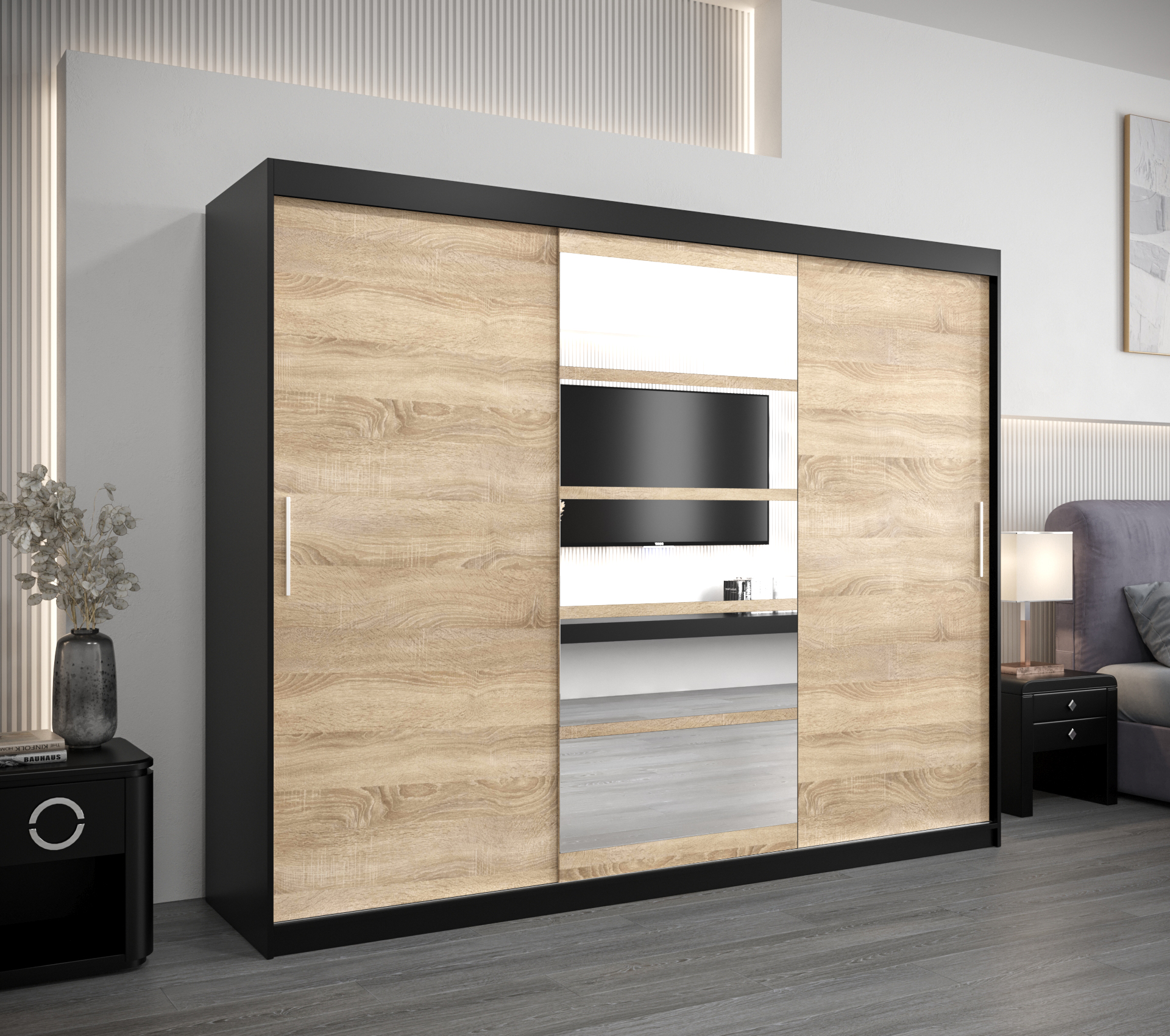 Šatní skříň Abi Ro1 – Černá 250 cm s dubem sonoma