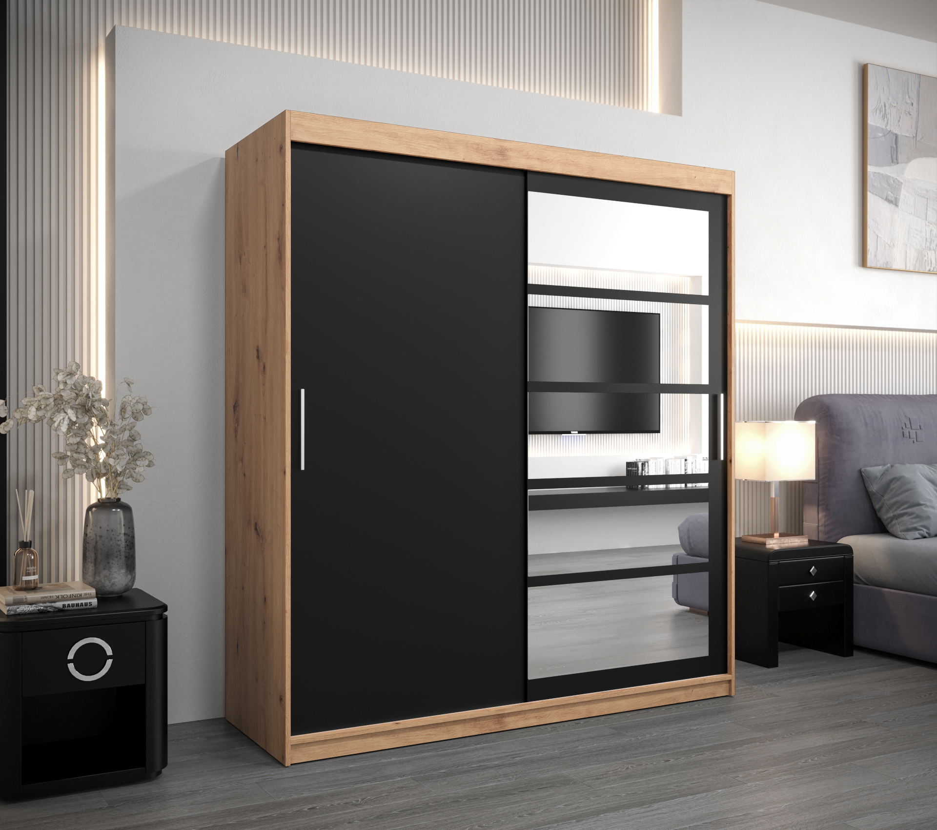 Šatní skříň Abi Ro1 představuje ideální řešení pro ty, kteří hledají moderní a praktický nábytek do ložnice. S rozměry 150 cm a v atraktivním dekoru dub artisan se stane elegantním doplňkem každého interiéru. Tato skříň je vybavena posuvnými dveřmi, které šetří prostor a usnadňují přístup k uloženým věcem.