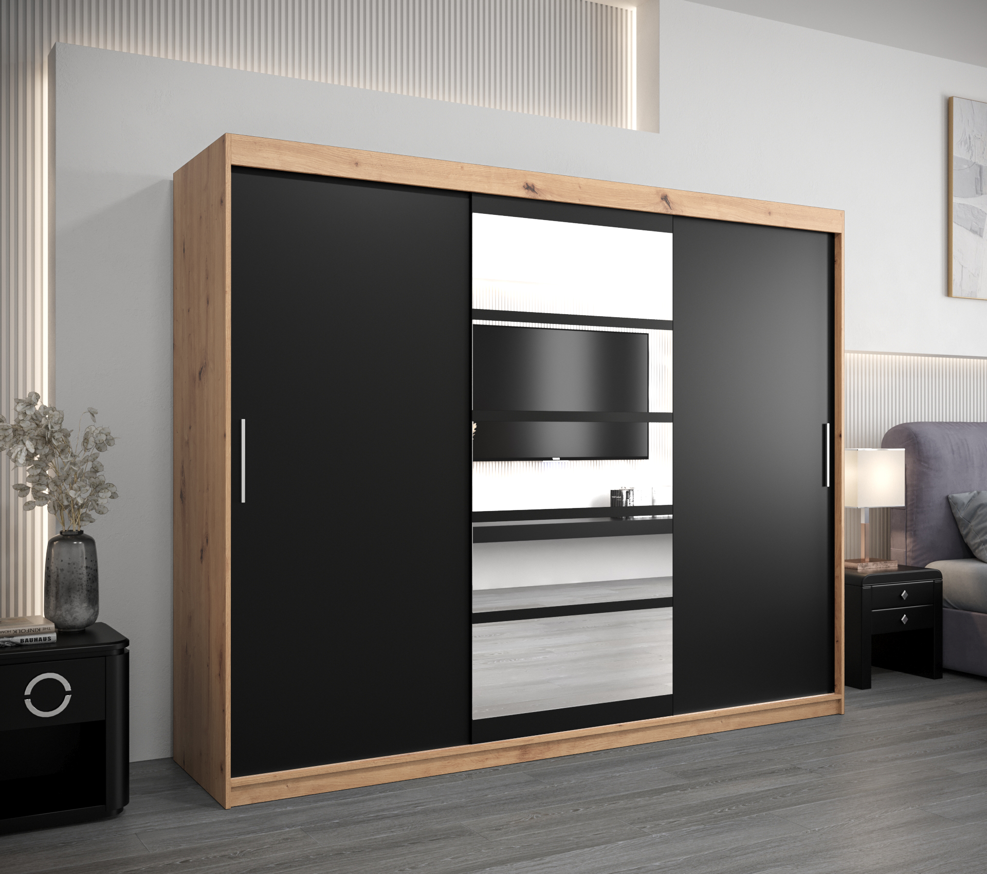 - Zrcadlo: Skříň je vybavena zrcadlem, které opticky zvětší prostor a usnadní vám každodenní úpravy.