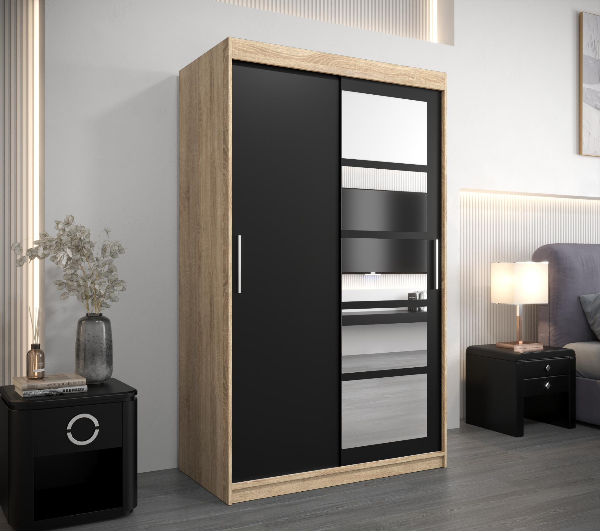 Šatní skříň Abi Ro1 je ideálním řešením pro ty, kteří hledají moderní a praktický nábytek do svého domova. S jejími posuvnými dveřmi a elegantním designem se stane stylovým prvkem každé ložnice. Korpus skříně je vyroben z kvalitní laminované dřevotřískové desky v dekoru Dub Sonoma, což zajišťuje nejen estetický vzhled, ale také dlouhou životnost.