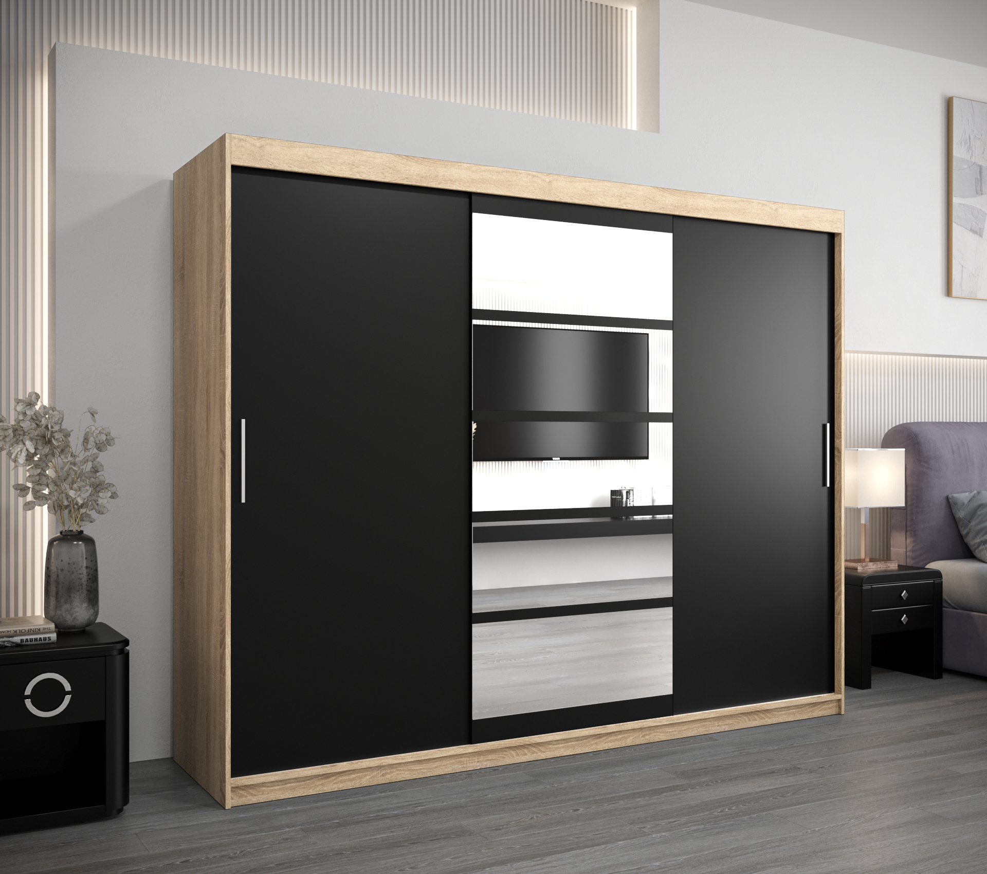 Šatní skříň Abi Ro1 v barvě dub Sonoma je ideálním řešením pro každou ložnici. Tato moderní skříň s posuvnými dveřmi kombinuje funkčnost a styl, čímž splní očekávání i těch nejnáročnějších zákazníků. S rozměry 250 cm poskytuje dostatek prostoru pro uložení vašich oděvů a dalších věcí.