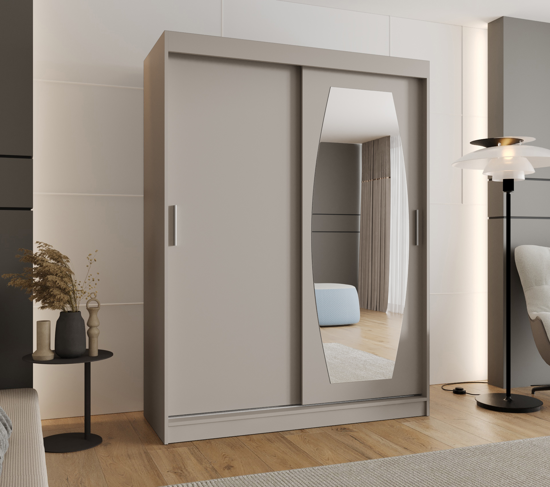 Šatní skříň Abi Rossa nabízí moderní design a prostorné uspořádání. S posuvnými dveřmi a zrcadlem se stane skvělým doplňkem vaší ložnice.