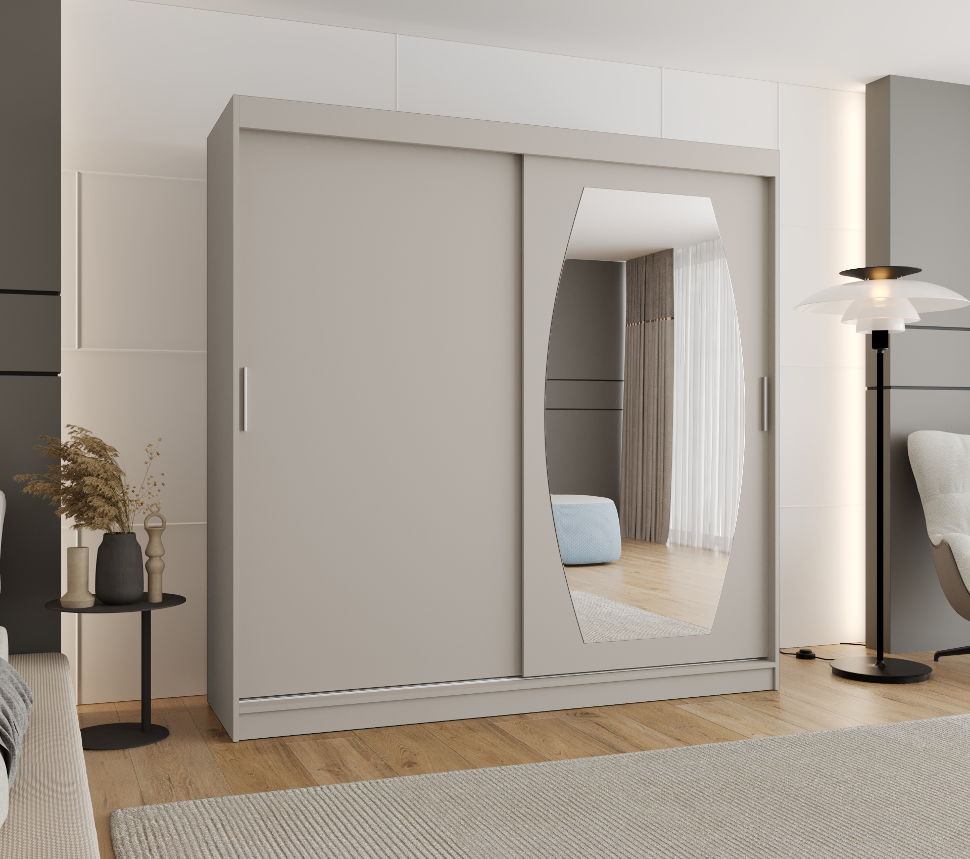 • Zrcadlo: Skříň je vybavena leštěným zrcadlem na dveřích, což opticky zvětšuje prostor.