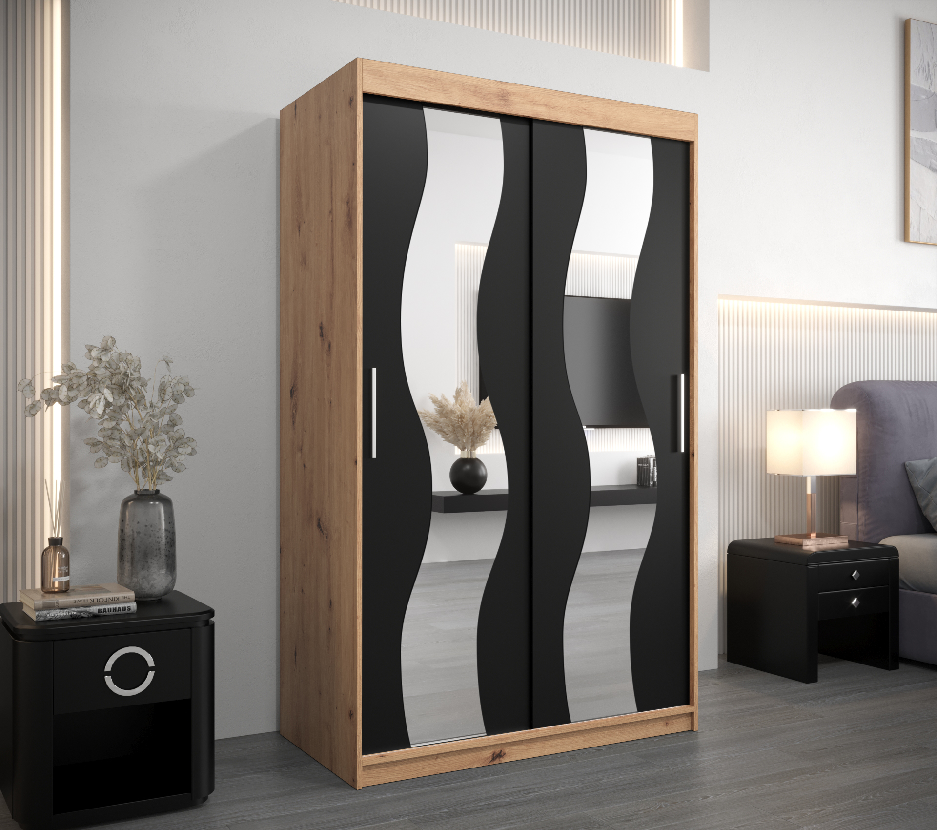 Skříň je dostupná také v dalších barevných provedeních, jako je dub artisan, černá a bílá. Tyto odstíny lze vzájemně kombinovat podle vašich představ a potřeb.