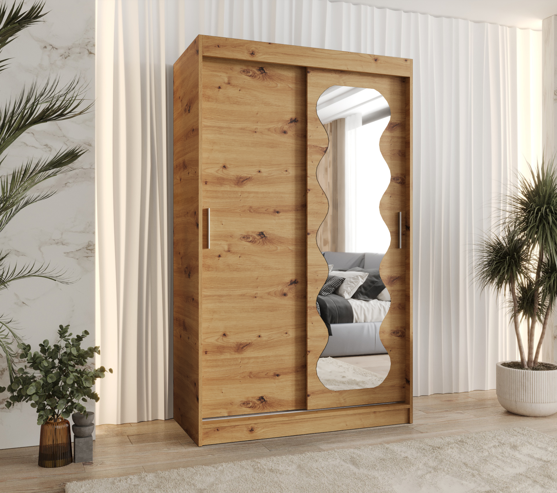 Šatní skříň Abi Spoti je ideálním řešením pro ty, kteří hledají moderní a praktický nábytek do své ložnice. S rozměry 120 cm a elegantním designem v dekoru dub artisan se skříň hodí do jakéhokoliv interiéru. Posuvné dveře šetří místo a zároveň poskytují snadný přístup k uloženým věcem.