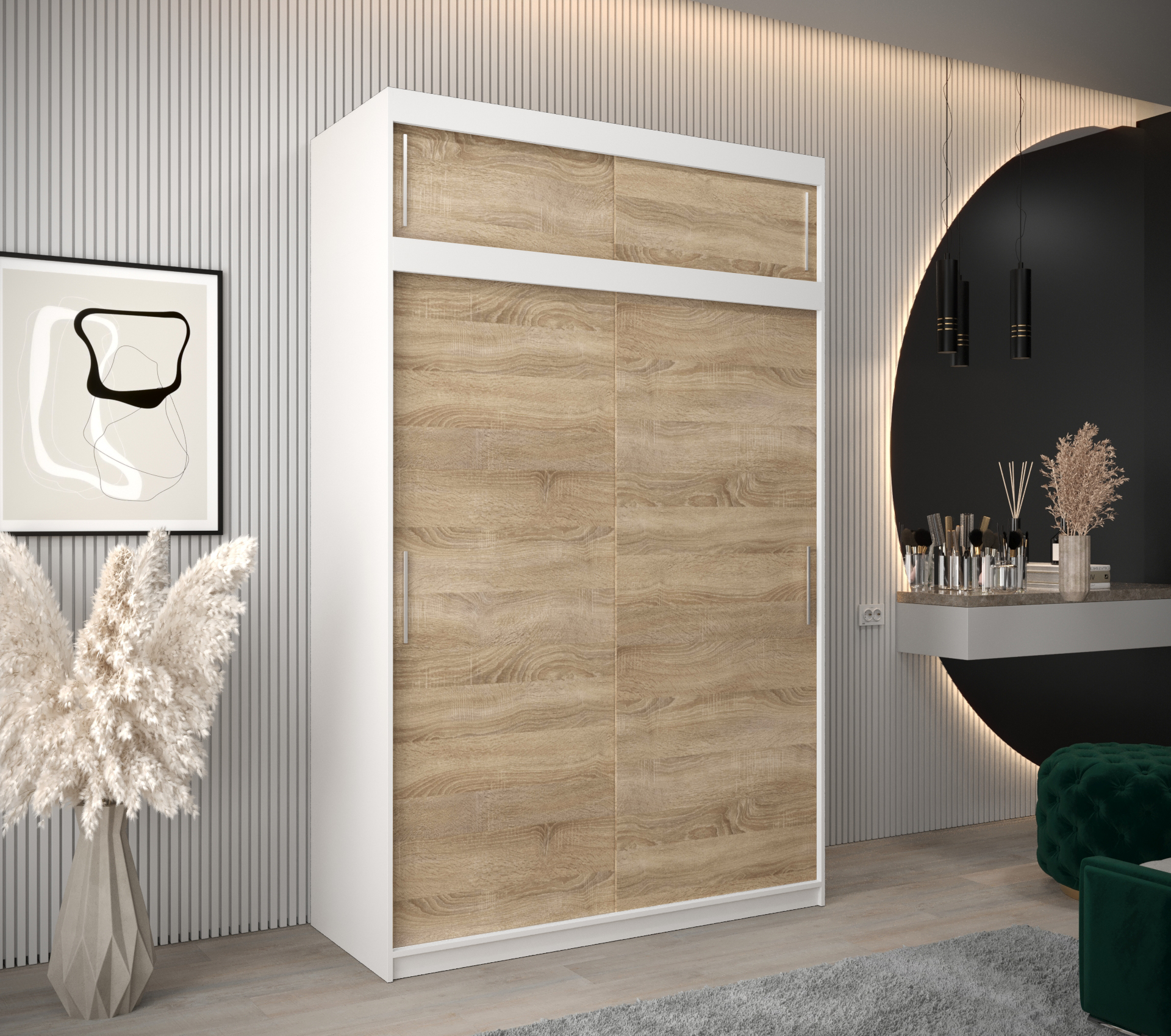 Pokud byste chtěli jiný rozměr, barevnou kombinaci nebo variantu se zrcadlem, na našich stránkách najdete další modely šatních skříní. Skříň lze také doplnit o další součásti ložnice, jako jsou postele a noční stolky, čímž vytvoříte harmonický vzhled vaší ložnice.