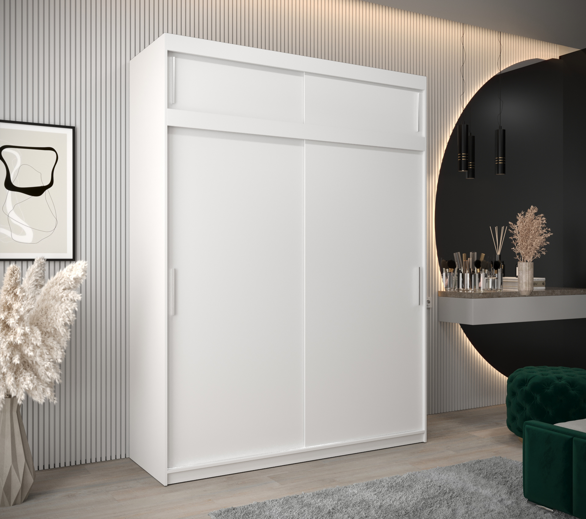 Šatní skříň Abi T0 s nástavcem je ideálním řešením pro ty, kteří hledají funkční a stylový nábytek do své ložnice. S jejími posuvnými dveřmi a moderním designem se stane skvělým doplňkem vašeho interiéru.