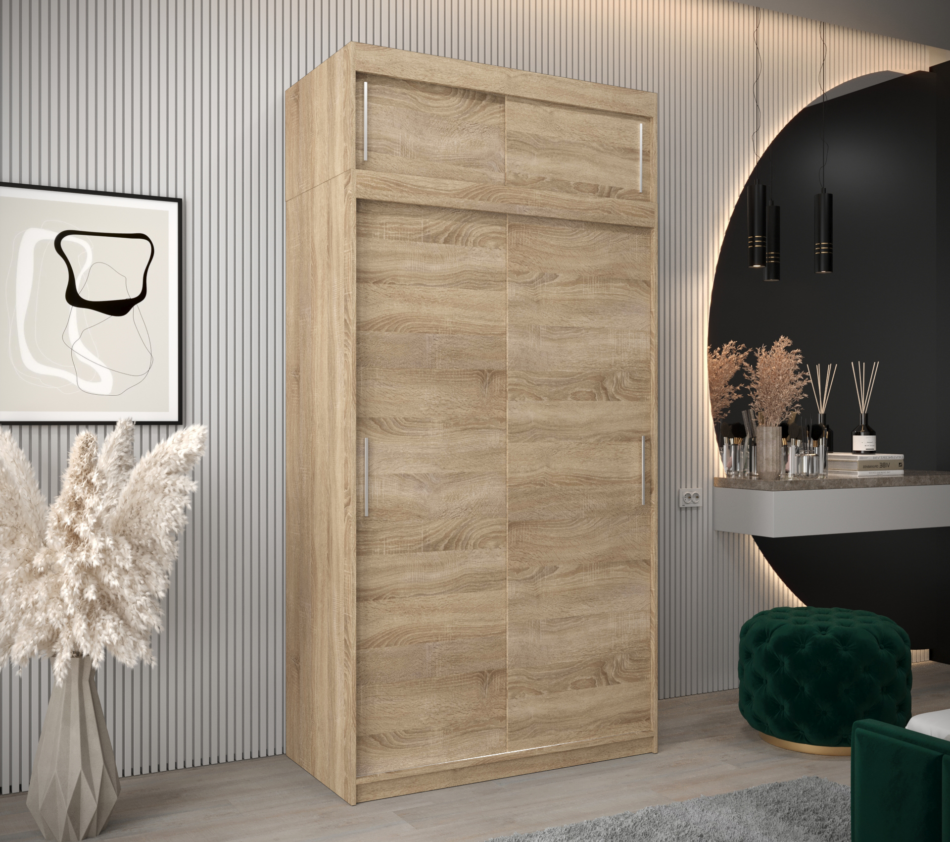 Šatní skříň Abi T0 s nástavcem je ideálním řešením pro ty, kteří hledají stylový a funkční kus nábytku do své ložnice. S elegantním designem v dekoru dub Sonoma a rozměry 120 cm, tato skříň nabízí nejen atraktivní vzhled, ale i praktické uspořádání pro vaše oblečení a doplňky.