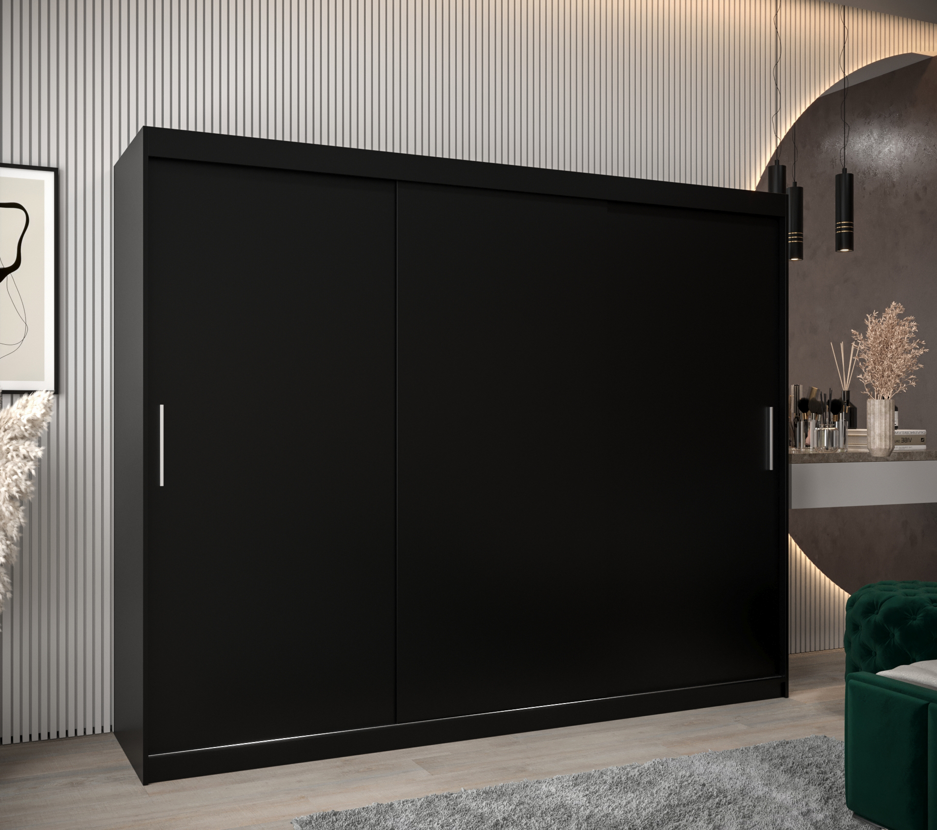 Šatní skříň Abi T0 je ideálním řešením pro ty, kteří hledají moderní a praktický nábytek do svého domova. S posuvnými dveřmi a elegantním designem se stane skvělým doplňkem každého interiéru. Korpus skříně je v černé barvě, což jí dodává nadčasový vzhled, který se hodí do různých stylů zařizování.