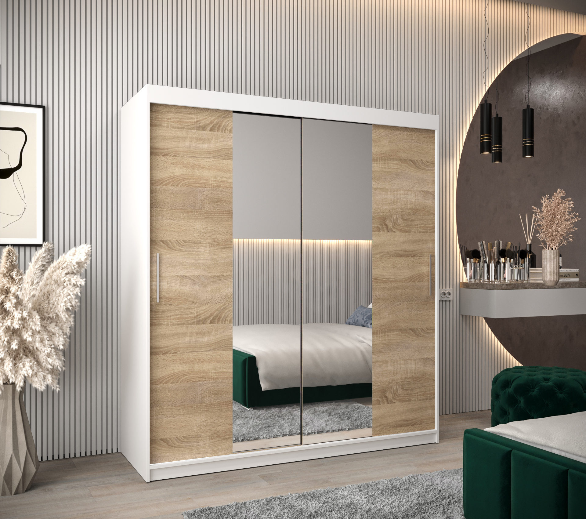 Šatní skříň Abi T1 – Bílá, 180 cm, Dub Sonoma
