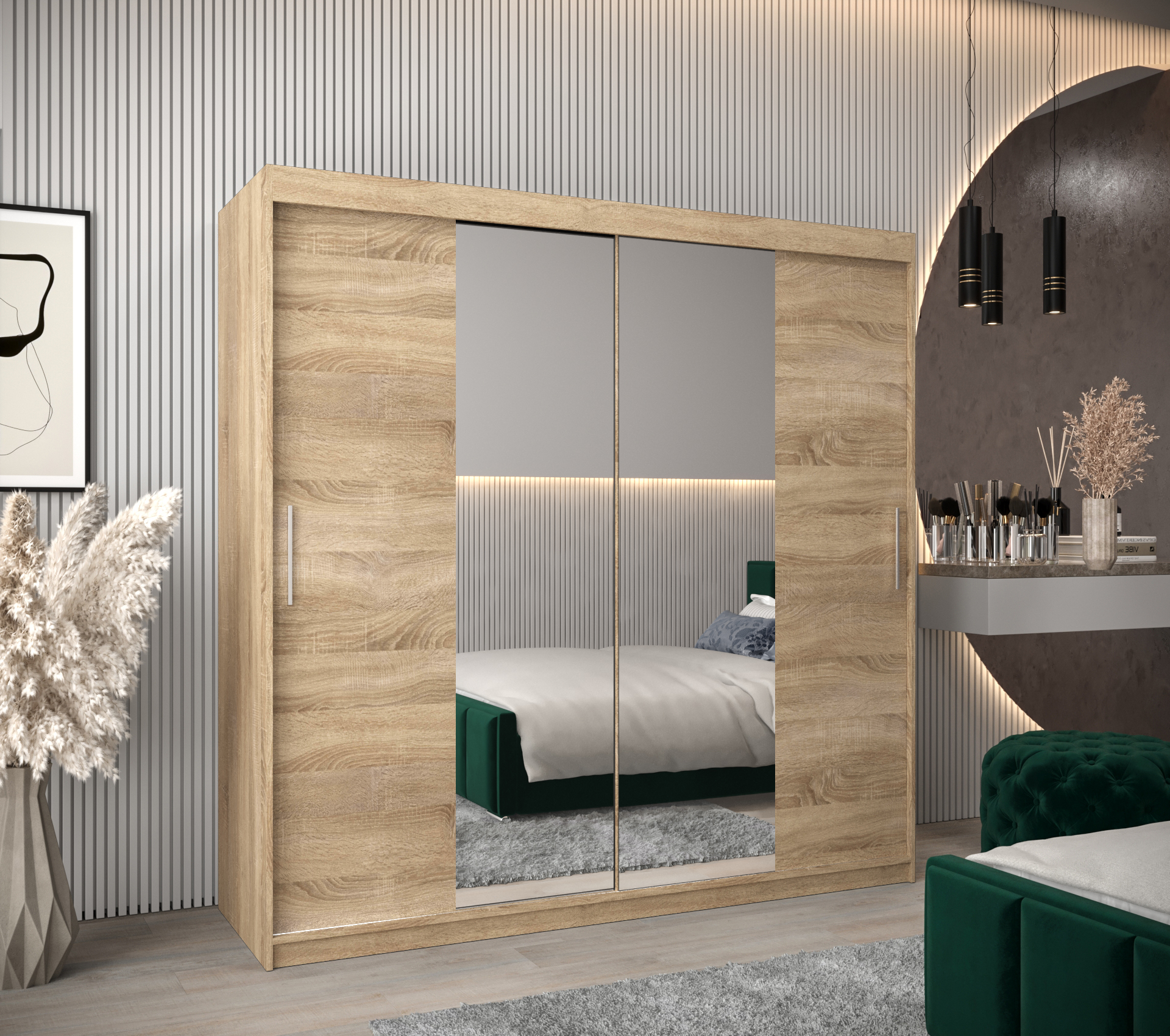 - Zrcadlo: Součástí skříně je elegantní zrcadlo, které opticky zvětšuje prostor.